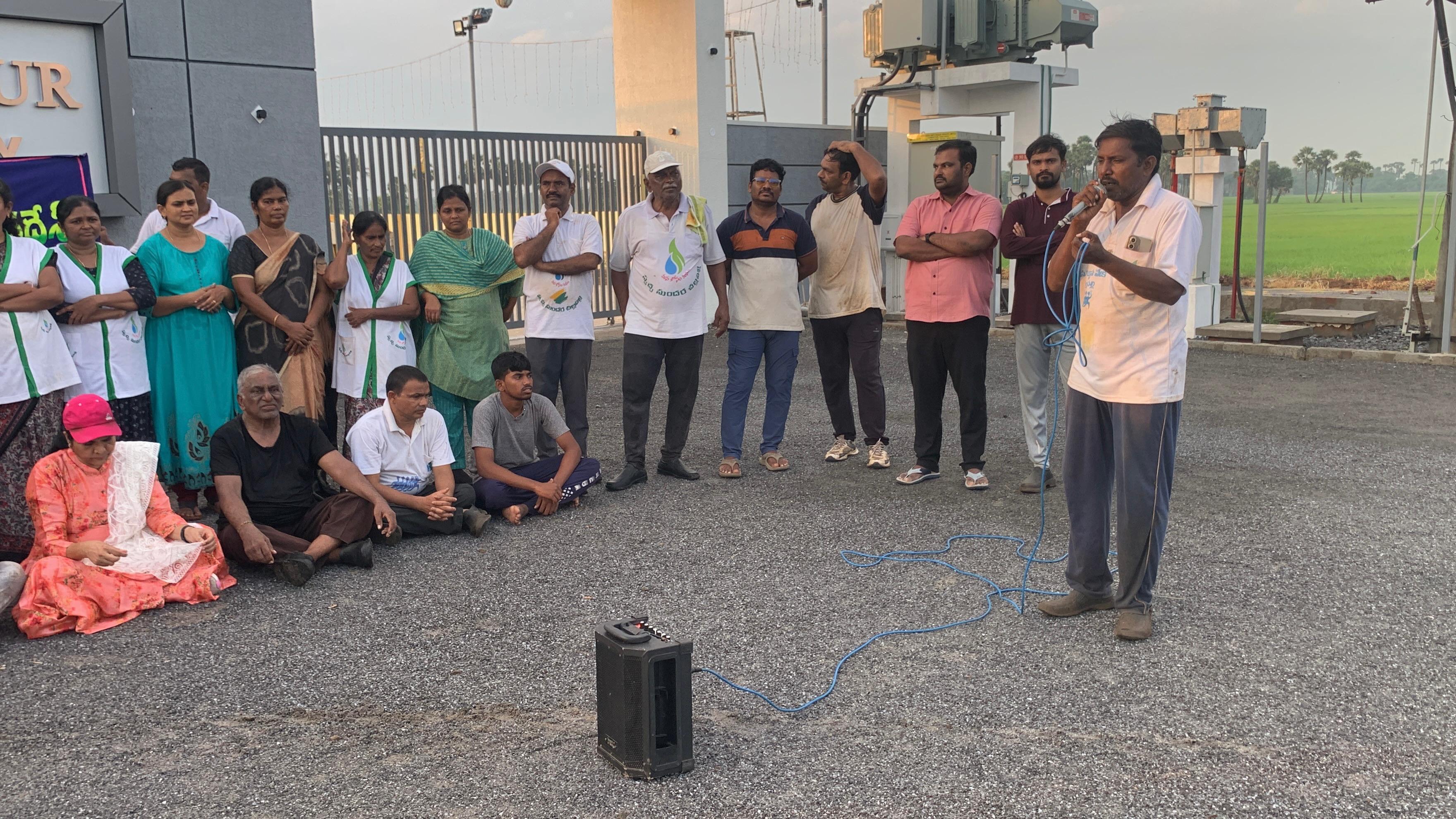 కొంతమంది మహిళా కార్యకర్తలు టన్నుల కొద్ది చెత్తను పైకి లాగి ట్రాక్టర్ లో లోడింగు కు గుట్టలు సిద్ధం చేయడం. కొద్దిమంది రెండవ వైపు రహదారి ప్రక్క పాదులలో కలుపు తీసి శుభ్రం చేయడం.