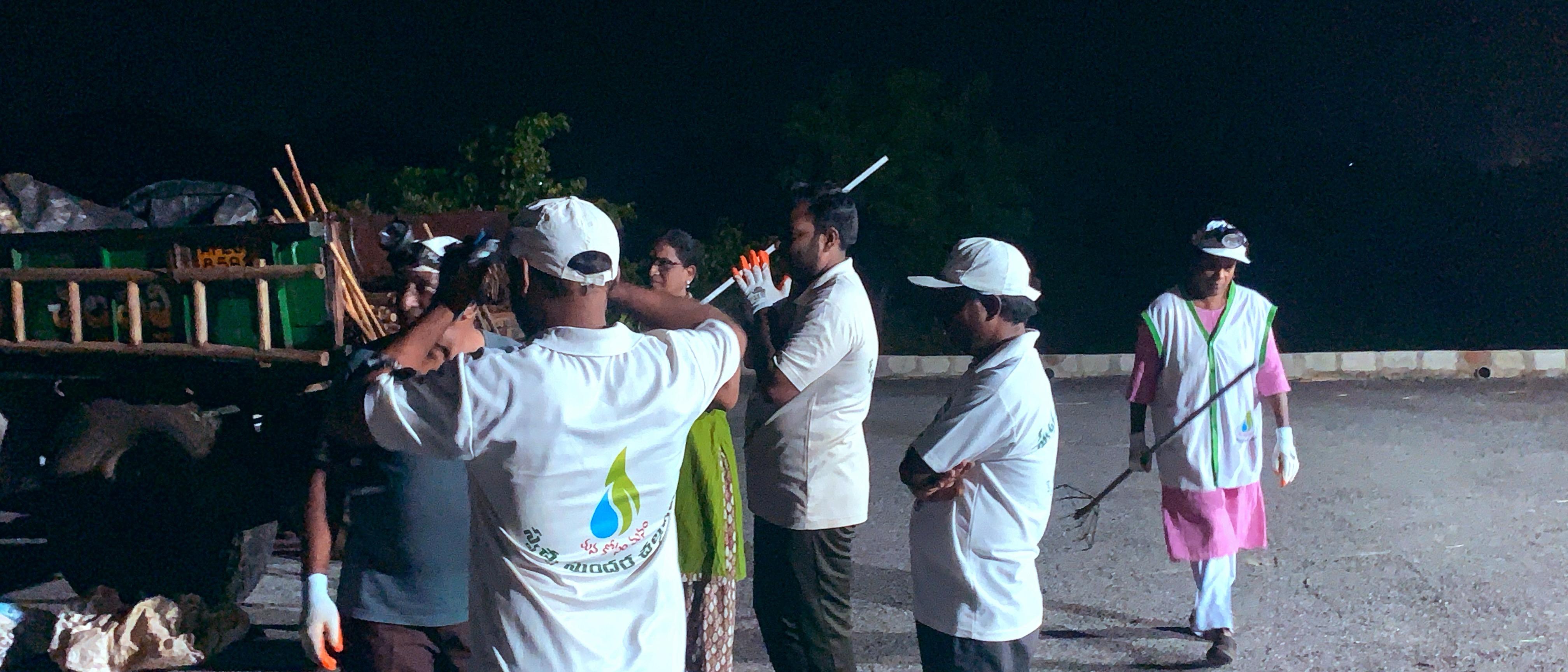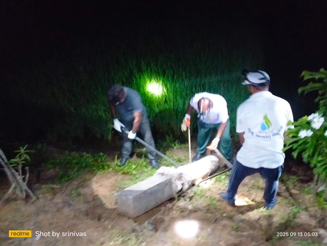 జాతీయ రహదారి పై ఉన్న శారదా గ్రాండియర్ వద్ద ఈ రోజు తెల్లవారుజాము 4.15 ని.లకు వచ్చి చేరినది 14 మంది కార్యకర్తలు. వెంటనే పనిముట్లు చేత బట్టి ఆయా పనులను విభజించుకుని రెండు మూడు బృందాలుగా చేరి పనిలో ముందుకు నడిచారు.