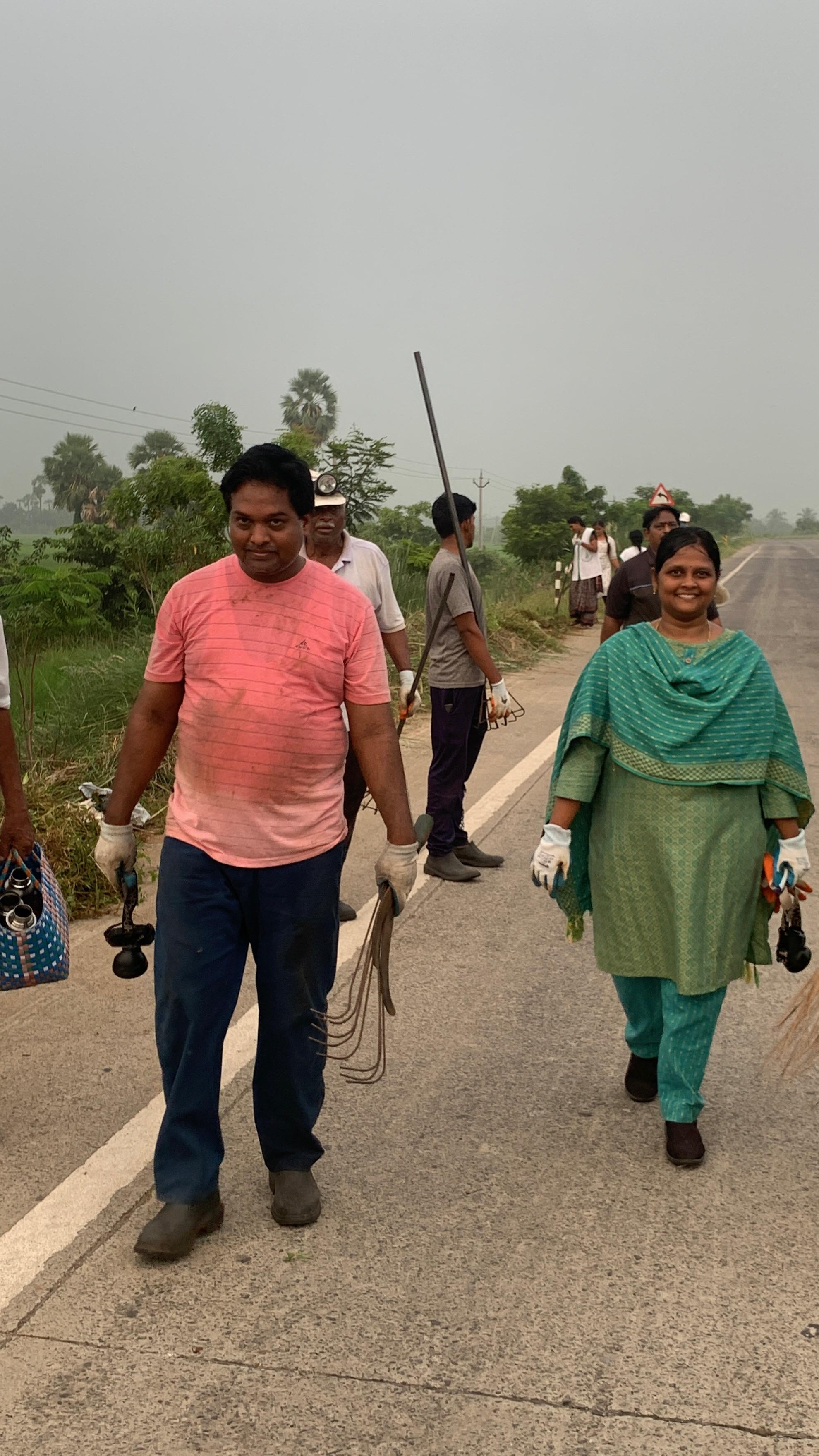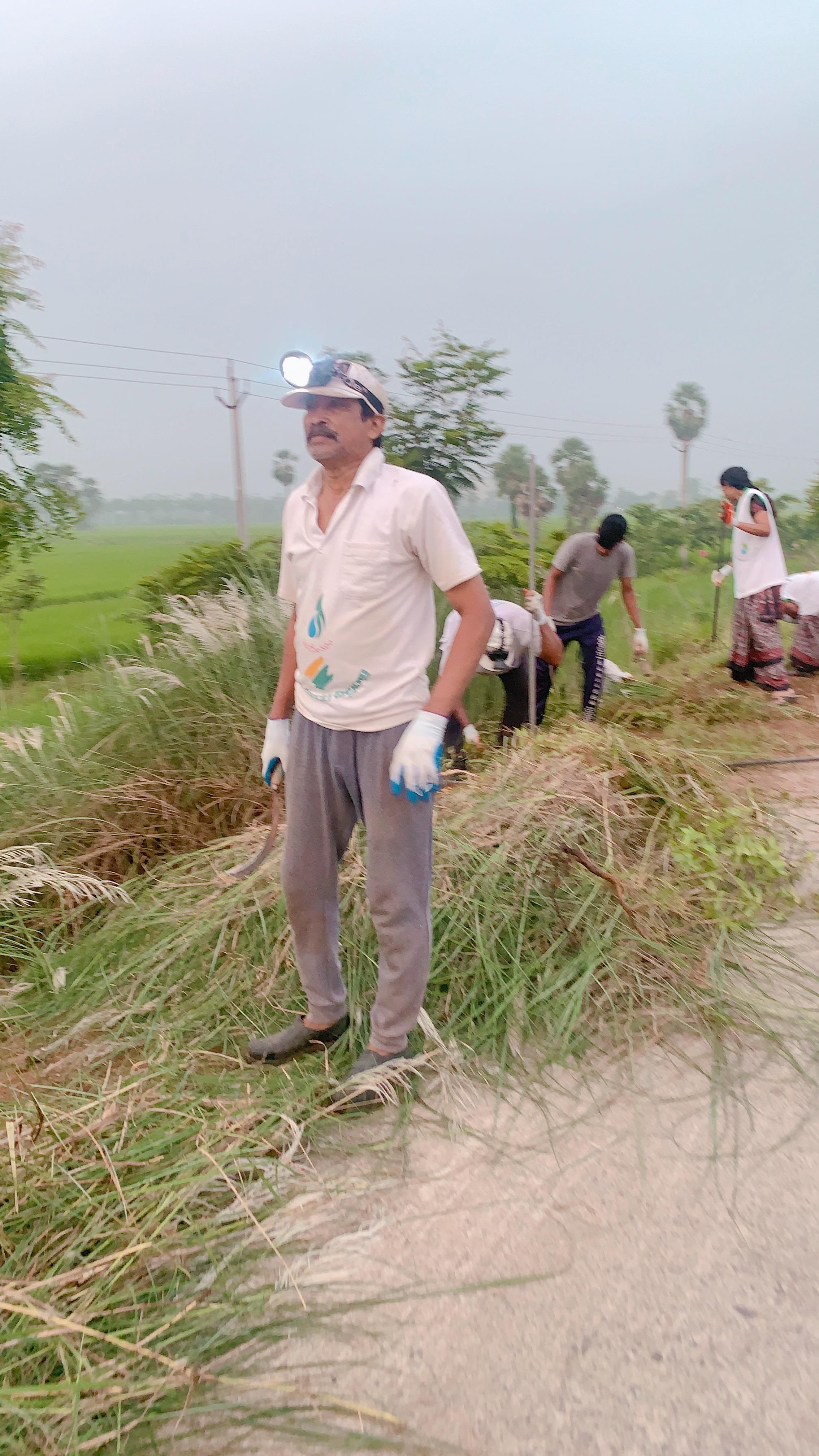 రోడ్డు మార్జిన్ క్రింది భాగం వరకూ చాలా పరిశుభ్రంగా ఉండేటట్లు పనిచేస్తూ ఉన్నారు. మరొక బృందం కార్యకర్తలు బాగు చేయగా వచ్చిన తుక్కు, పనికిరాని ముళ్ళ పొదలను గుట్టలుగా లాగి లోడింగ్ కు సిద్ధం చేసుకుని ట్రాక్టర్లో లోడ్ చేస్తున్నారు.