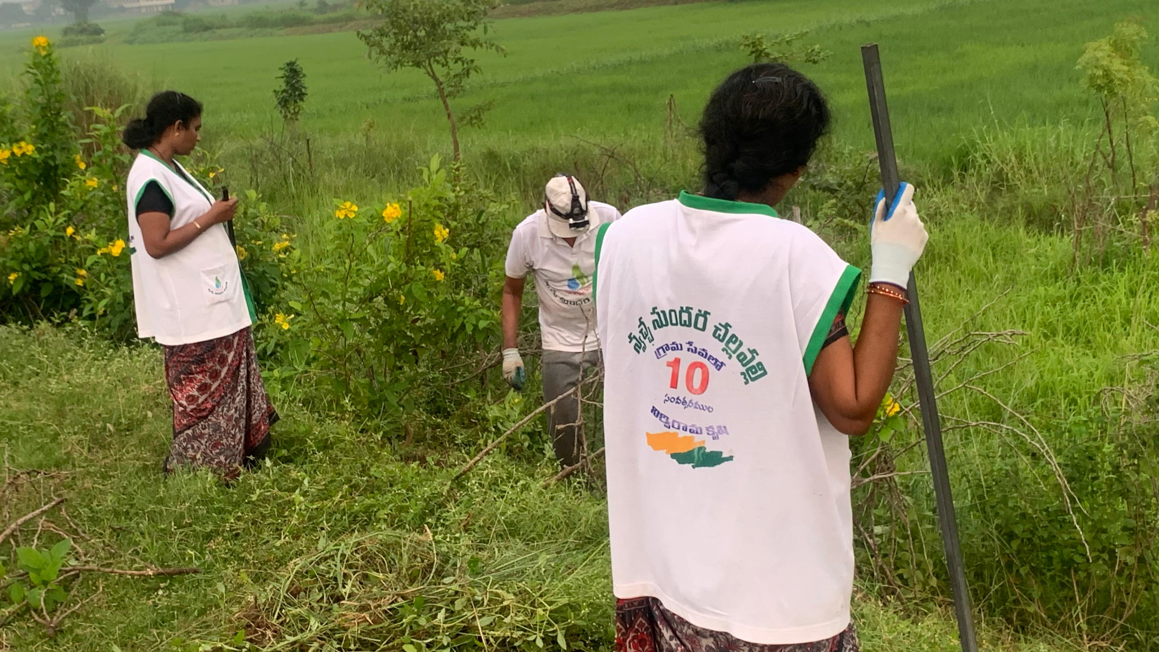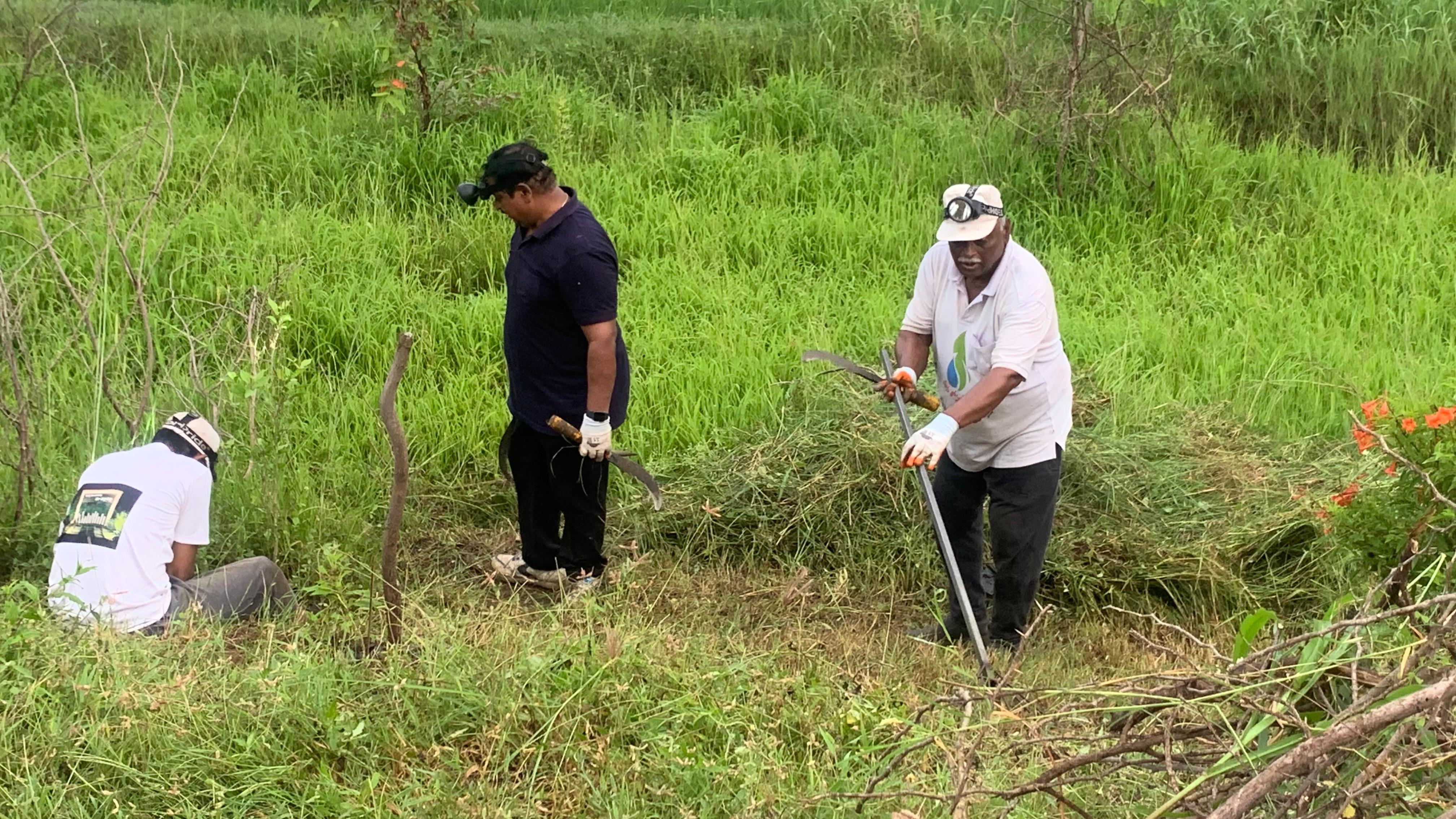 అలాగే క్రింది భాగంలో పెట్టిన నీడనిచ్చు మొక్కలకు, పండ్ల మొక్కల చుట్టూ కూడా ఉన్న రెల్లు గడ్డి కలుపును ఏరివేసి ఆ మొక్కల పెరుదలకు ఆటంకం లేకుండా చేశారు.