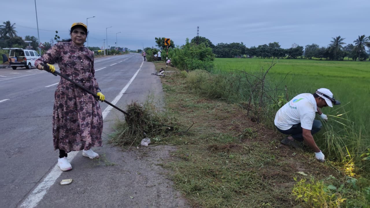 జాతీయ రహదారి పై కొత్తూరు జంక్షన్ దగ్గరలోని బస్ స్టాప్ వద్దకు తెల్లవారుజాము 4:20 నిమిషాలకు కార్యకర్తలు పనికి సిద్ధమయ్యారు. హైవేకు ఒక ప్రక్కన ఉన్న మొక్కలలో గడ్డిని కలుపును తొలగించి మొక్క చుట్టూ బాగు చేయడం చేస్తున్నారు. అలా చేయడం వలన మొక్కలు తొందరగా పెరగటానికి అవకాశం ఏర్పడుతుంది.