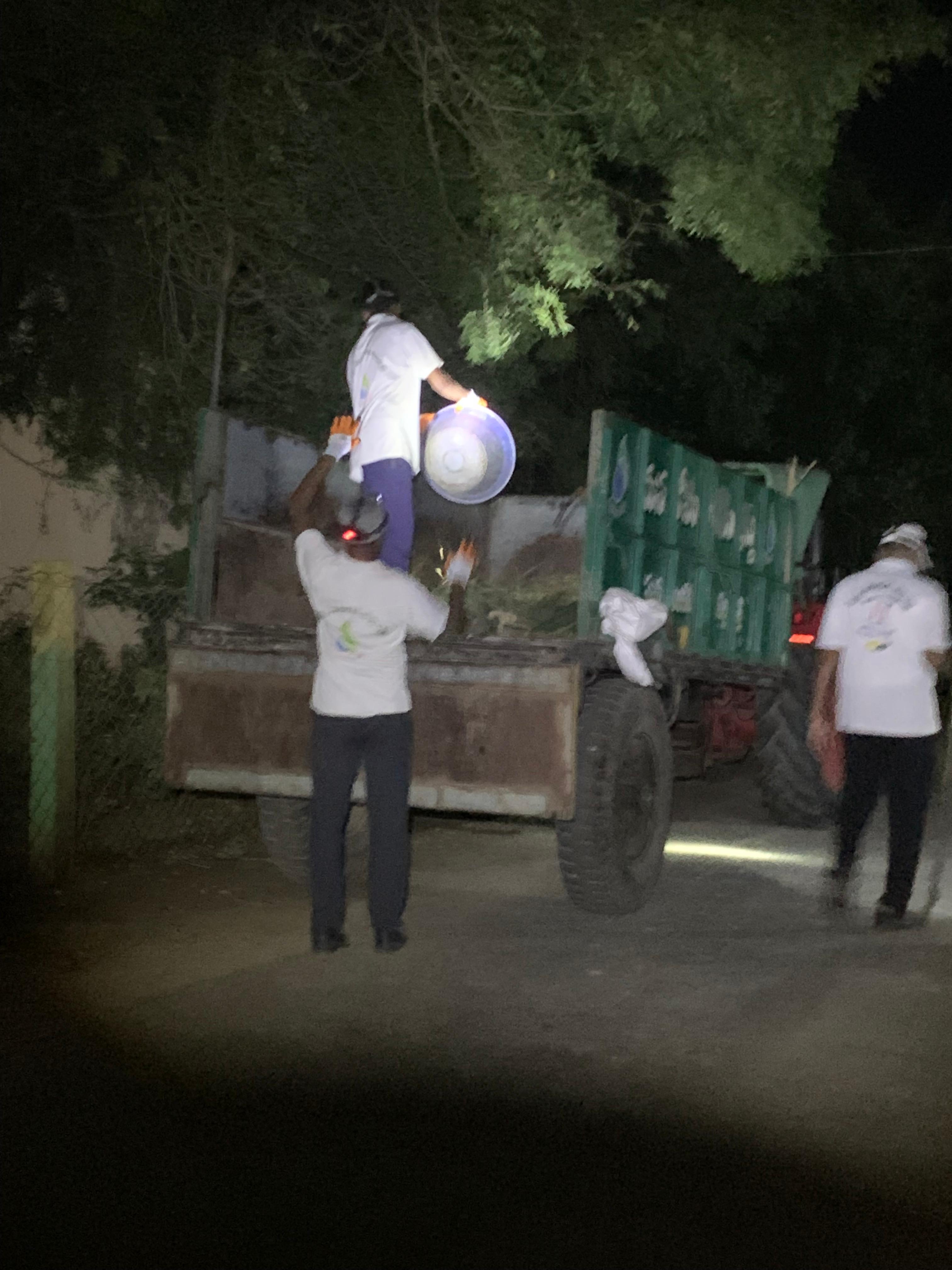 చెత్త బండెక్కి, నానా రకాల కాలుష్యాలను సర్దుతున్న - సాపేక్షకంగా క్రొత్త కార్యకర్త హేమంత్ చురుకుదనాన్నే గమనించండి – చెత్త త్రొక్కుడులో గురువైన అంజయ్యనే మరపిస్తున్నాడు!