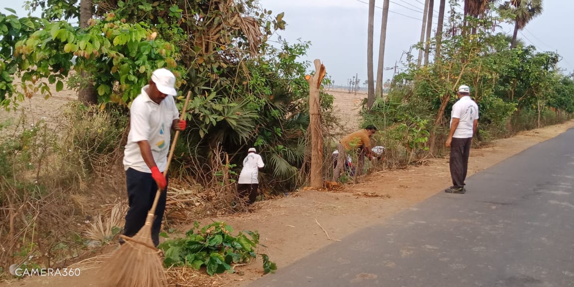 పాగోలు బాటలోని “ విభాగ భవన సముదాయం” (అపార్ట్మెంట్స్) దగ్గర ఆగి, ట్రాక్టర్ నుండి పనిముట్లు, కారులోనుండి చేతి తొడుగులు, జేబుల నుండి మూతి చిక్కాలు తీసి, ధరించిన 24 మంది నిత్య నిస్వార్ధ శ్రమ దాతలు అలవాటు చొప్పున మైకు నుండి శ్రావ్యమైన- ఉత్తేజకరములైన పాటలు వింటూ- ఒకరికొకరి మధ్య దూరం పాటిస్తూ మధ్యలో ఛలోక్తులతో- చెమటకు ఒంటికంటుకుపోతున్న బట్టలతో- అలవోకగా-గంటన్నరకు పైగా ఈ బాటను స్వచ్చ-శుభ్రం చేయాలనే తమ లక్ష్యాన్ని పూర్తి చేశారు. ఎవరికనుగుణమైన కత్తులు- పారలు-గొర్రులు-చీపుళ్లు వాళ్లు చేపట్టినా- అందరి మనసులోనిదీ ఒకటే గమ్యం- చల్లపల్లి కనుబంధంగా ఉన్న ఈ రోడ్డు మరింత శుభ్రంగా- అందంగా మారిపోవాలనే!