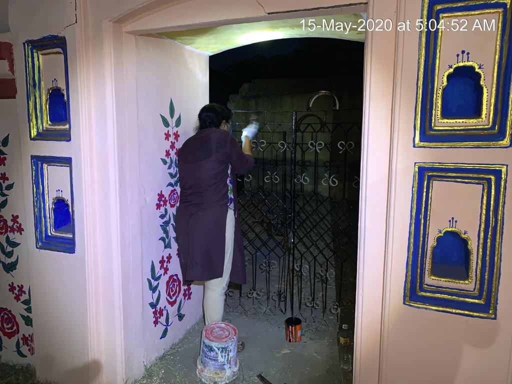 గత 35 రోజులుగా బందరు దారిలో – జమీందార్ల వైజయంతం దగ్గర సుందరీకరణ బృందం చేస్తున్న చిత్రలేఖన కళాతపస్సు నేటికొక కొలిక్కి వచ్చినట్లున్నది. రేపటి నుండి వీళ్ళ కళా దృష్టి ఏ వీధిలోని ఏ గోడ మీద పడనున్నదో మరి!