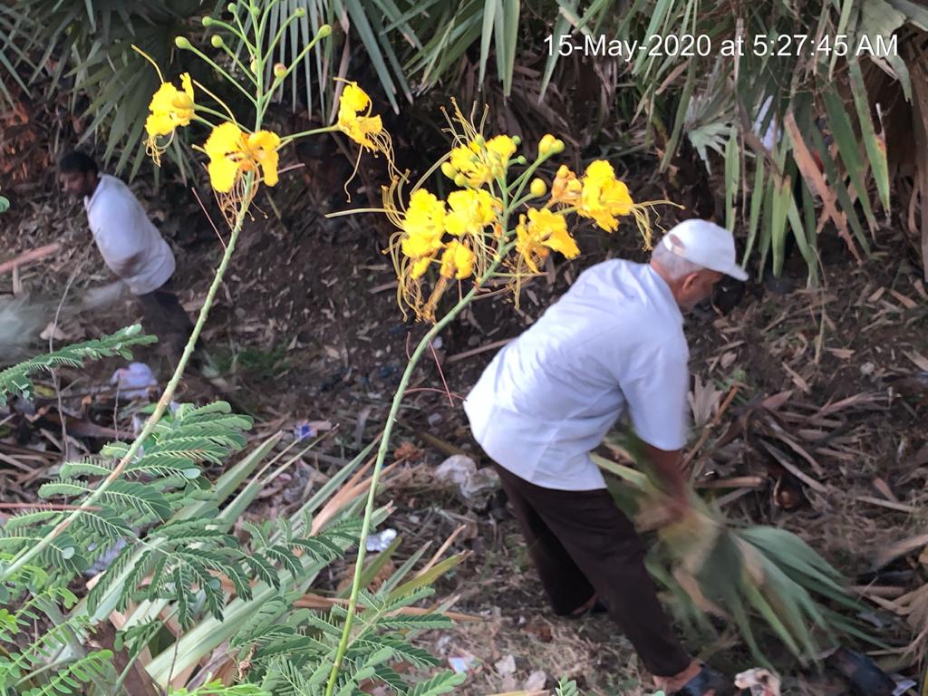 ఏడెనిమిది మంది ట్రస్టు ఉద్యోగులు నిన్నటి తమ ముందస్తు ప్రణాళిక ప్రకారం వీధిని శుభ్రం పరిస్తే – ఇద్దరు నీళ్ళ టాంకరు తో వేలాది మొక్కల వేసవి దాహం తీరుస్తున్నారు!