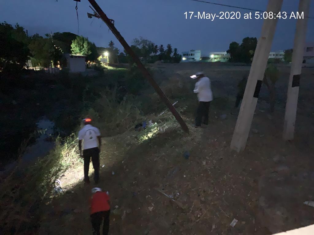 సుందరీకరణ బాధ్యులు అవనిగడ్డ- పాగోలు దారుల కూడలిలోని మురుగు కాల్వ మీది వంతెన రెండు గోడలకు వెలిసిన పాత రంగుల్ని గీకి, నిన్న కడిగిన చోట్ల-ముందుగా ప్రైమరు పులిమి, ఆరబెట్టి, రంగులు పూసే పనిలో మునిగితే- నలుగురు కార్యకర్తలు వంతెన క్రింద- పొడి బారిన మురుగు కాల్వను శుభ్రం చేశారు. ఏనాడూ కఠిన నిబంధనలు లేని ఈ స్వచ్చంద శ్రమదానంలో- ఎవరికభిమాన పాత్రమైన- అనువైన కృషిని వారు చేస్తుంటారు మరి!