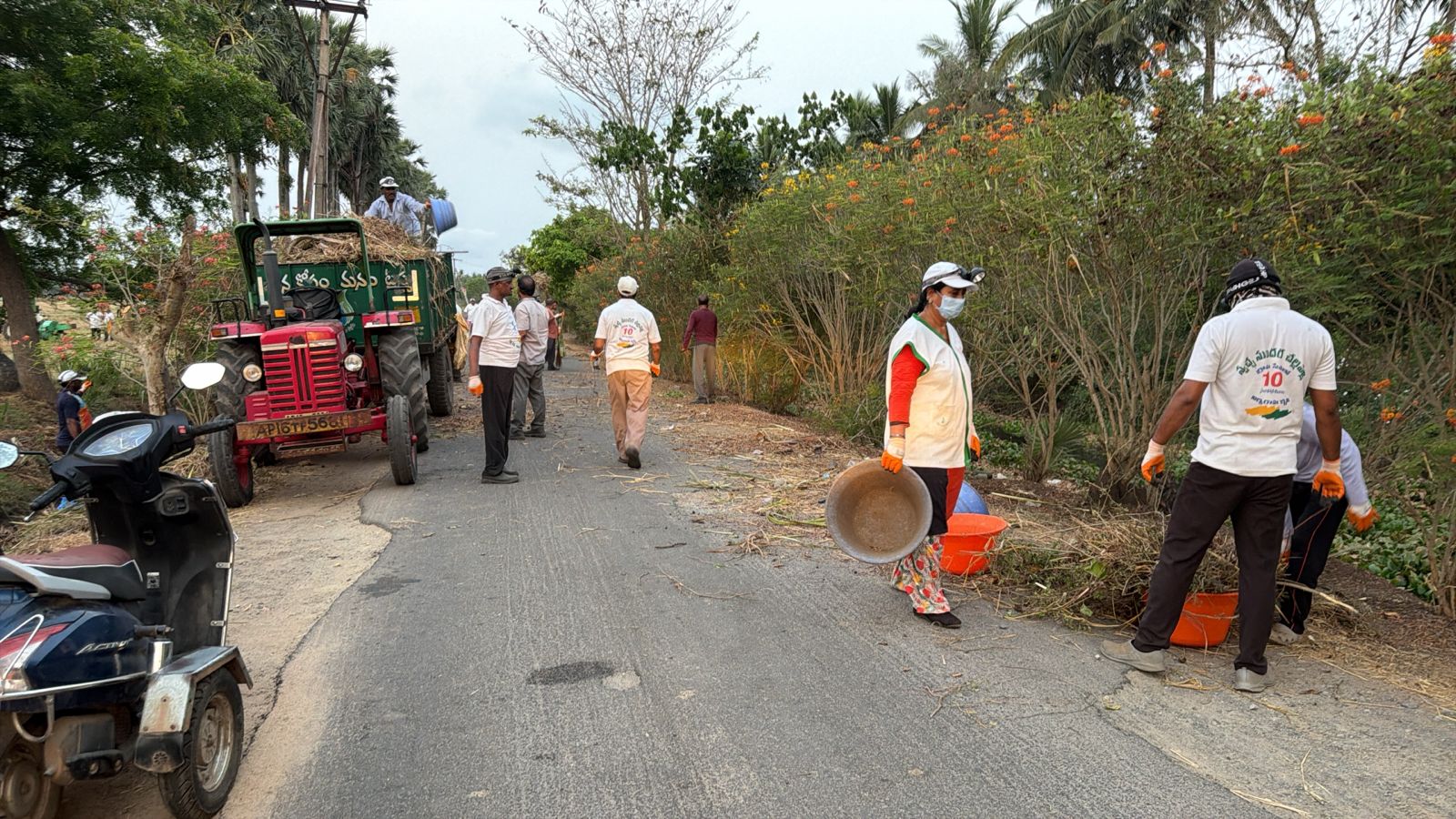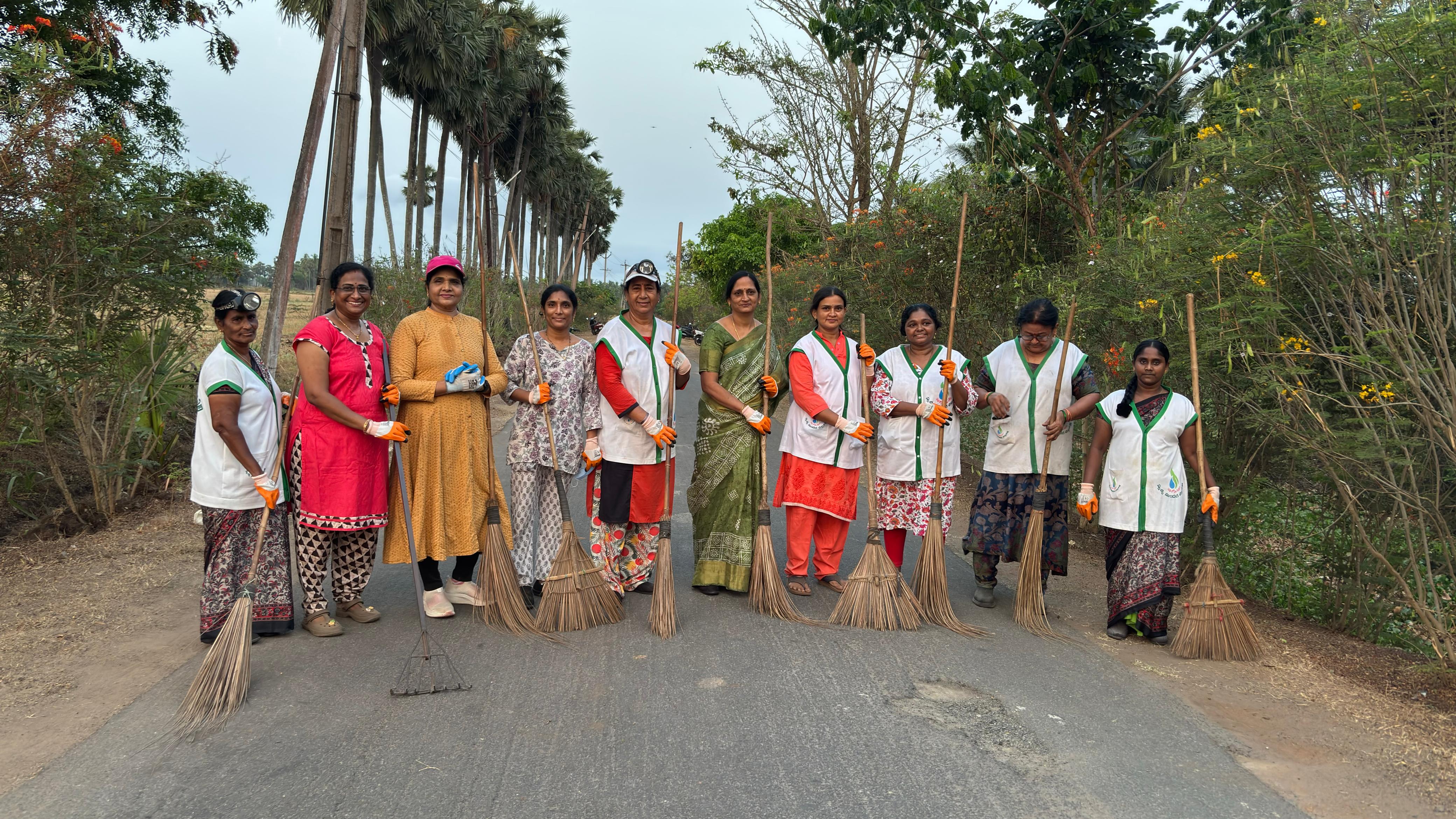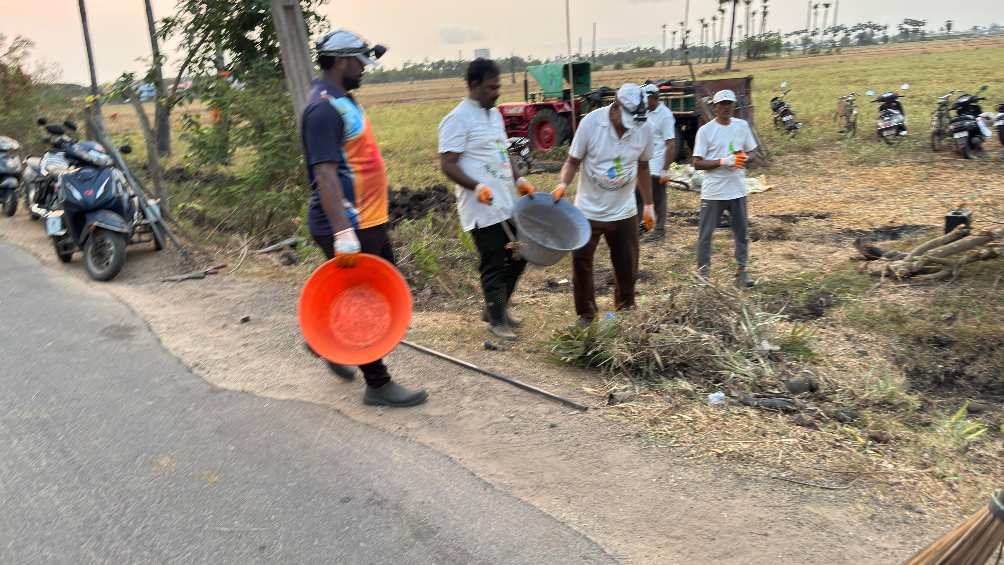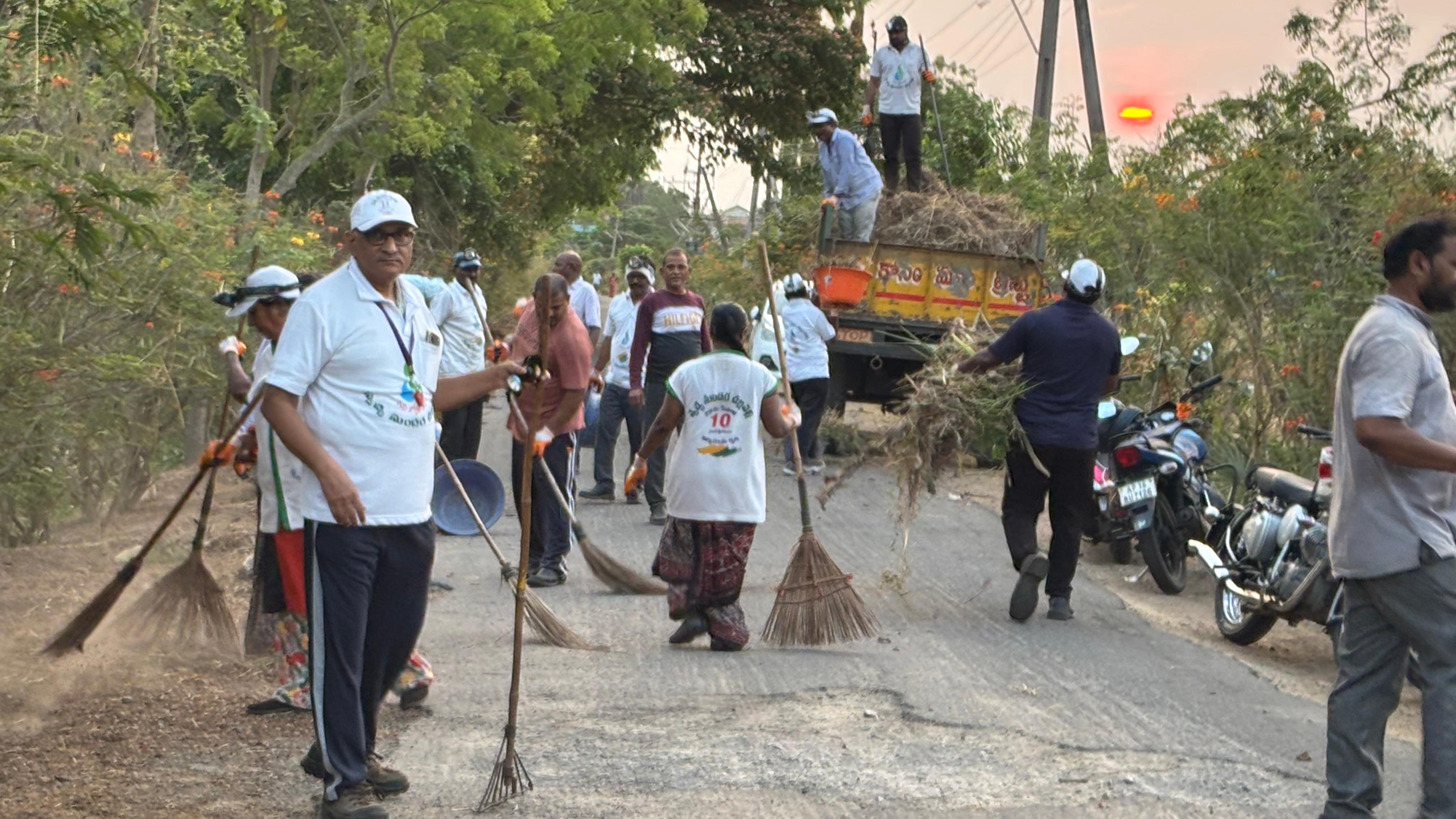 ఆ నిరీక్షణ ఫలించి, ఈ వేకువ 40 కు పైగా కార్యకర్తల బలగం రానే వచ్చింది, ఎవరి అభిమాన పనిముట్లను వారు ధరించనే ధరించారు, చెమటలు కారుతున్నా - చీపుళ్లు దుమ్ము లేపుతున్నా - తమ భుజాల మీద గ్రామ సమాజం మోపిన బాధ్యతను నెరవేర్చుకొన్నారు!