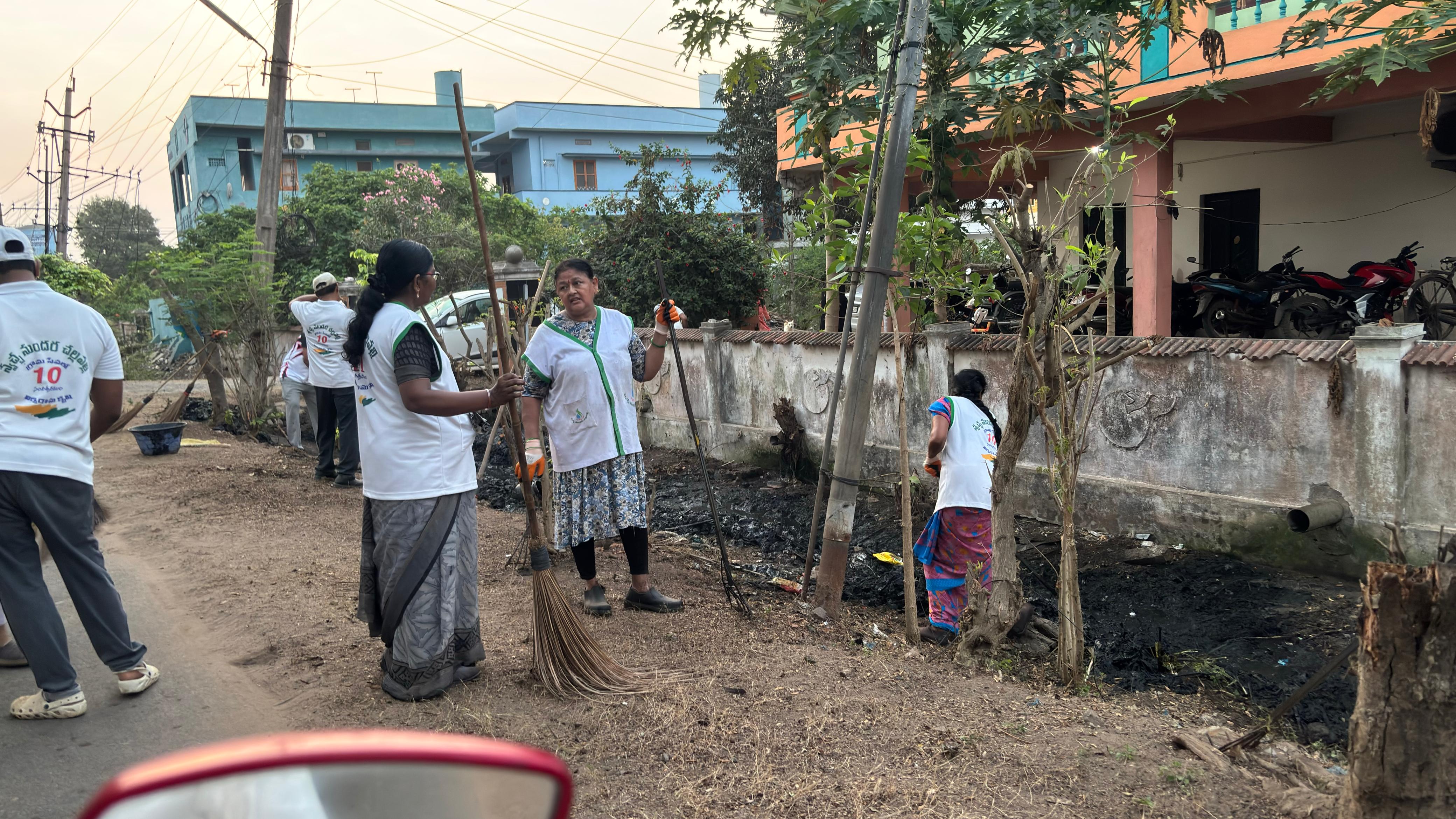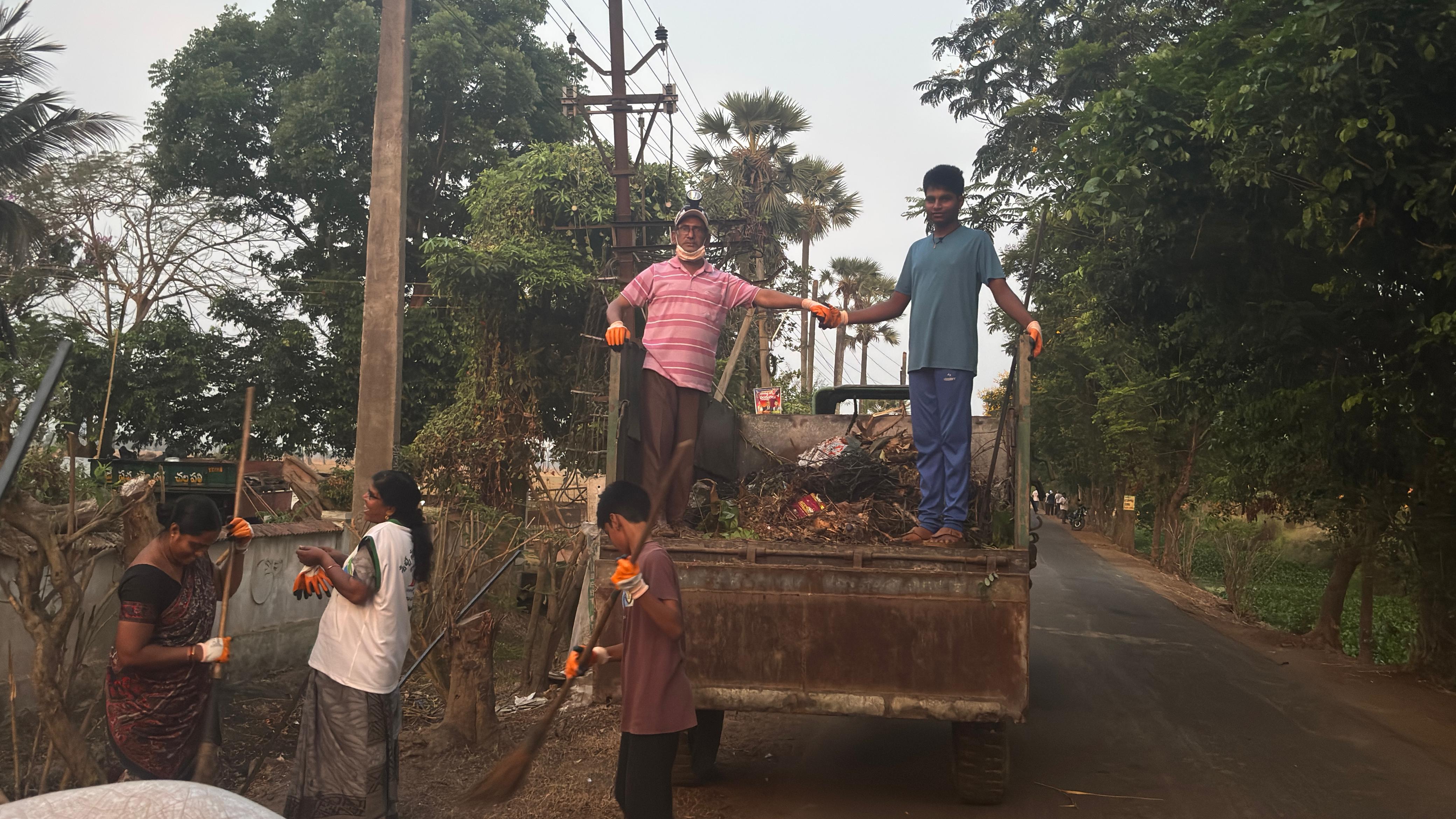 చెత్త బండిని ఎలా లోడింగు చేశారో- బాటనూ, అపార్ట్ మెంటు  గేట్ల వద్దా ఎలా ఊడ్చారో అక్కడి గృహస్తులు చూస్తే బాగుండేది!