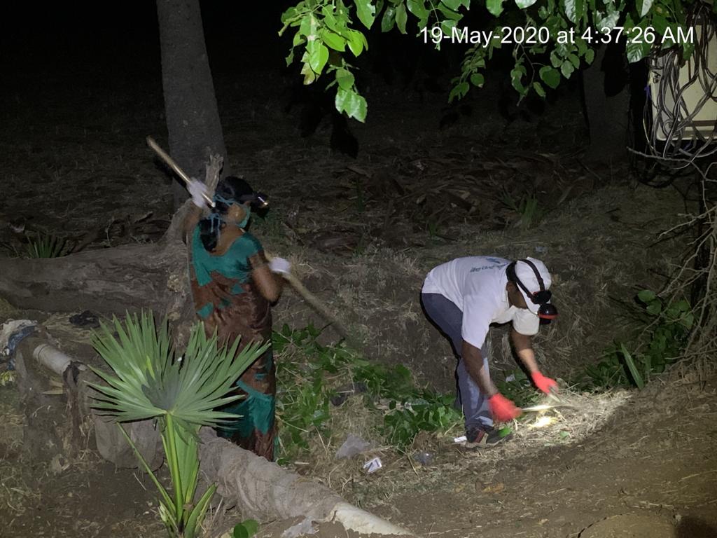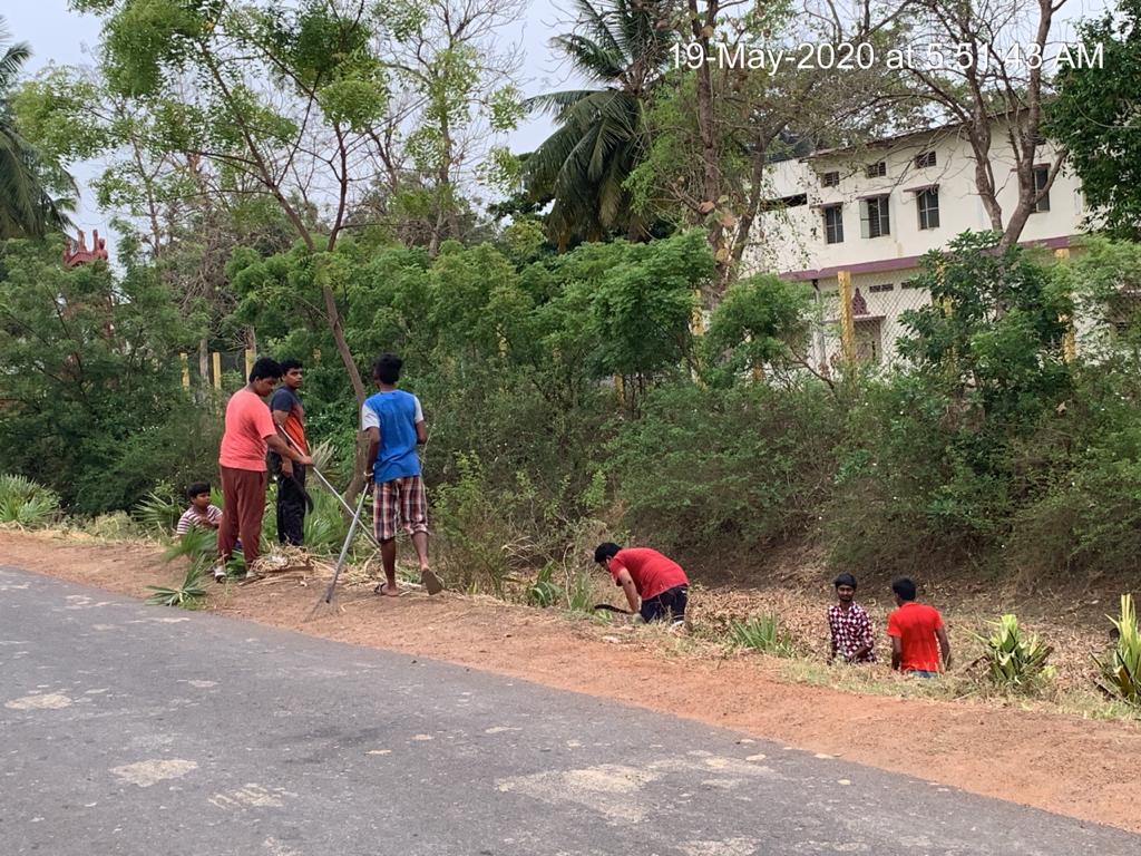 3) మహాబోధి బడి కంచె దగ్గర – డ్రైనులో తట్టు పెద్ద గట్టు మీది 60 గజాల్లో – ఎన్నాళ్ల నుండో పెరుగుతున్న చిట్టడవి మీద ముగ్గురంటే ముగ్గురే – సాహసికులు చీకటిలోనే కత్తులతో చేసిన యుద్ధంతో తెల్లవారే పాటి కది కార్యకర్తలంతా వచ్చి చూసేంతగా శుభ్రపడింది! ఈ మొత్తం 150 గజాల గట్టునూ ఇలా శుభ్రపరిచి, త్వరలో వర్షాలు పడే నాటికి దాన్ని మరొక అందాల ఉద్యానంగా మార్చాలని వీళ్ళ ప్రయత్నం!