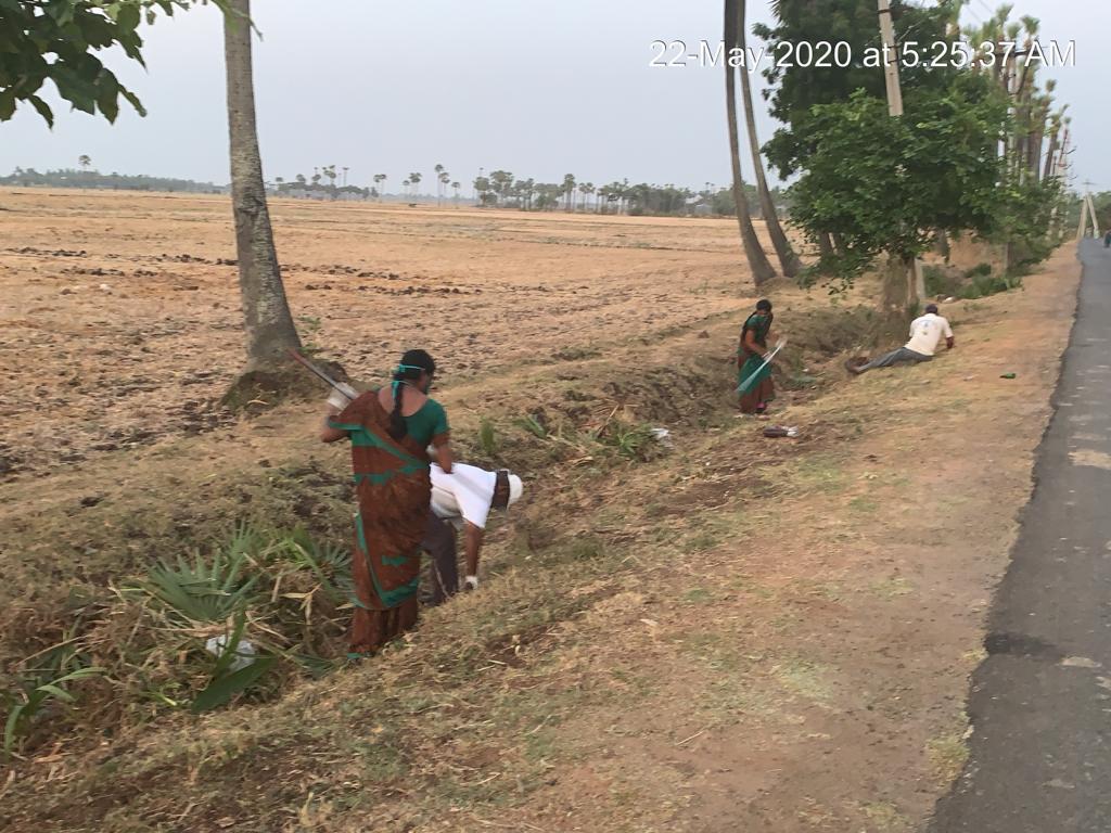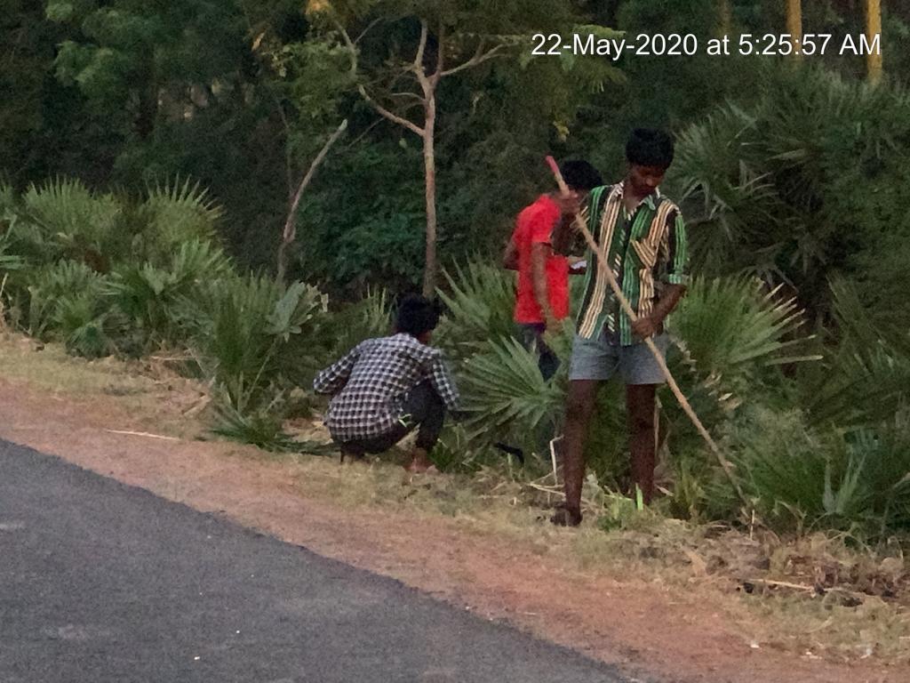 1) కొందరు పూల మొక్కల కుదుళ్లు సరిదిద్ది, కంపపాతి, పశువుల నుండి రక్షణ కల్పించారు.