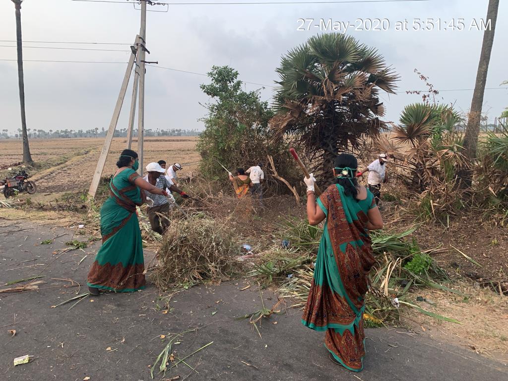 మిగిలిన కొందరు కార్యకర్తలు ఈ రోజు పాగోలు దారి రెండో మలుపు దిశగా డ్రైన్ లో మిగిలిన గడ్డినీ, ఎండు ఆకులు- కొమ్మల్నీ, ప్రభుత్వాల ఆదాయాలకు హామీ ఇస్తున్న మద్యం ఖాళీ సీసాలనూ, ప్లాస్టిక్ తుక్కునూ కోసి, ఏరి, నరికి, ఊడ్చి, ఆ పోగుల్ని ట్రాక్టర్ లో నింపుకొని డంపింగ్ యార్డుకు చేర్చారు.