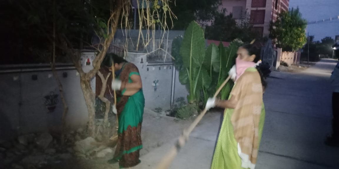 - నడుమ కొన్ని ఛలోక్తులు, స్వచ్చ కబుర్లు తప్ప కర్తవ్య పరాయణంగా సాగిన సమిష్టి కృషిలో – మళ్ళీ ఎవరి పని విభాగం వాళ్ళదే! ఊడ్చే మహిళలు చీపుళ్లతో బాటలు, వాటి అంచులు ఊడుస్తూనే ఉన్నారు.