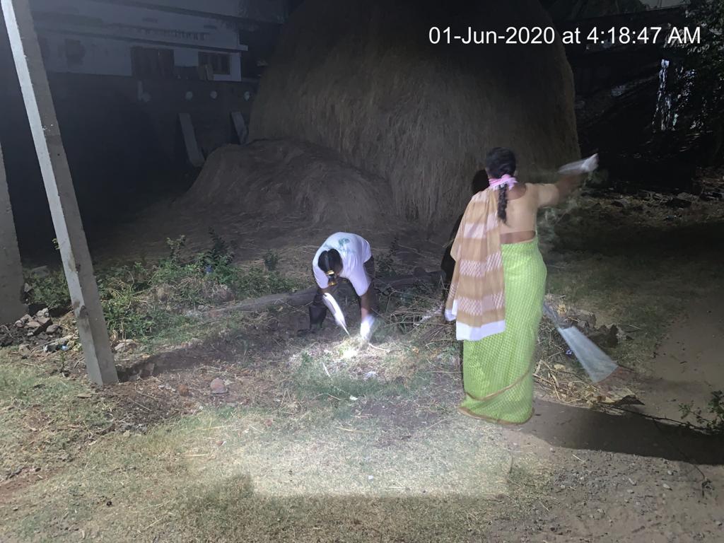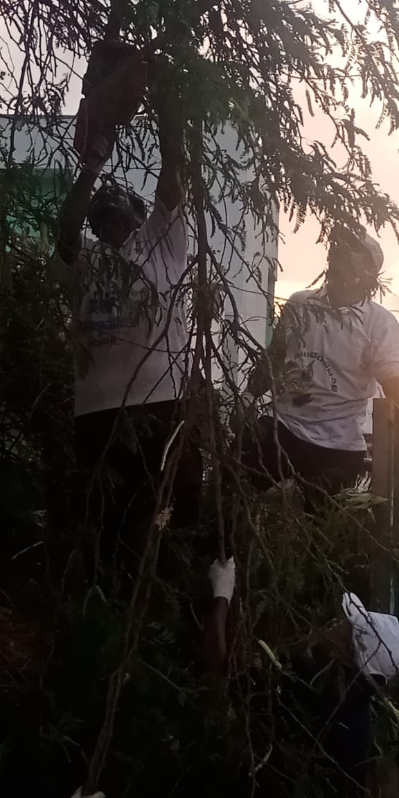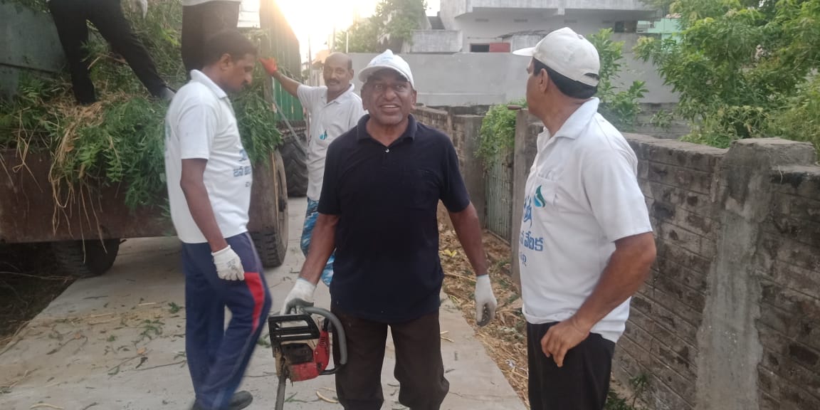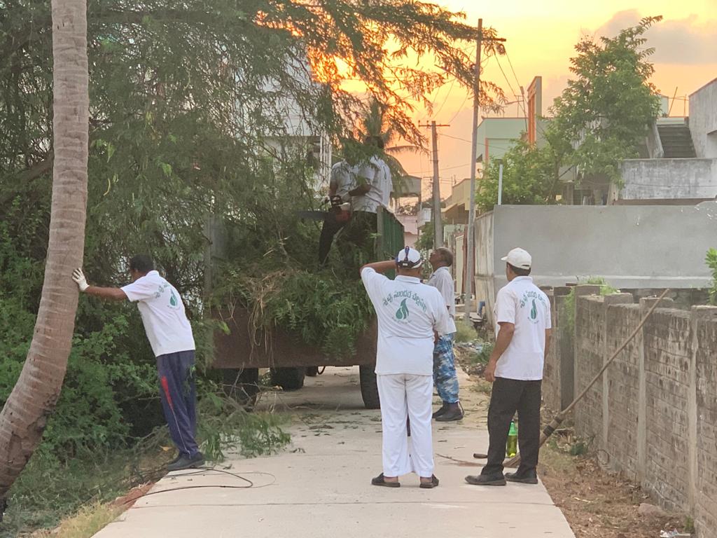 -  సదరు నరికిన వ్యర్ధాలతో బాటు ఇతరేతర ప్లాస్టిక్ సంచులు, ఖాళీ సీసాలు, కాగితాలు, ఎండుటాకులు వంటివి దంతెలతో అడ్డ చీపుళ్లతో గుట్టలుగా లాగి ట్రస్టుకు చెందిన ట్రాక్టర్ లోకి ఎక్కించి, చెత్త కేంద్రానికి చేర్చి వచ్చే కార్యకర్తలూ సజావుగా తమ పని చేసుకుపోయారు.