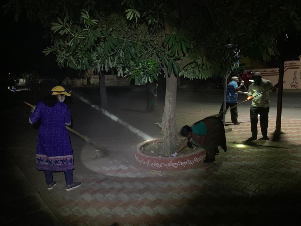 వేకువ 4 గంటలైనా కాకముందే-3.55 కే నిర్దేశిత బందరు జాతీయ రహదారిలో- భగత్ సింగ్ గారి ఆస్పత్రి దగ్గర ఆగి, చే తొడుగులు - మూతి చిక్కాలు, అపరి శుభ్రతా విధ్వంసక (చీపుళ్లు, కత్తులు, దంతెల వంటి) ఆయుధాలు ధరించిన 31 మంది స్వచ్చ సైనికులు (వీరు కాక ట్రస్టు ఉద్యోగులు వేరు చోట్ల) యధావిథిగా - అలవోకగా అక్కడి నుండి సంత బజారు దాక - తూర్పు రామాలయం, పెద్ద మసీదు, మేదర వాడ, టీ కొట్ల, టిఫిన్ హోటళ్ల, క్షౌరశాలల, ఇతర అంగళ్ల దగ్గర ఉత్పన్నమైన ఏ చిన్న కశ్మలాన్నీ వదలక, క్షుణ్ణంగా శుభ్రపరిచారు.