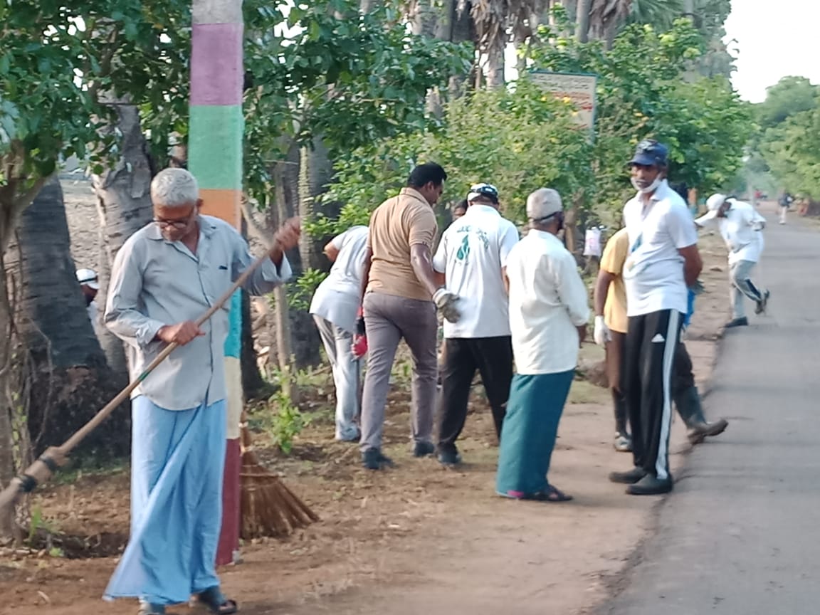 వేకువ 4.05-6.10 నిముషాల నడుమ ఈ ఆదివారం పెదకదళీపురం మార్గంలో- శివరామపురీ సమీపాన-ఇటు విద్యుత్ శాఖ వారి ట్రాన్స్ఫార్మర్ దిమ్మె నుండి- అటు కత్తుల సాన షెడ్డు దాక విజృభించిన 30 మంది స్వచ్చ కార్యకర్తల నిత్య నీరాజనార్పిత శ్రమదానం నిజంగా వర్ణనార్హం!  శివరామపురం నుండి ఐదుగురు, ముగ్గురు ట్రస్టు కార్మికులతోను, చల్లపల్లి శ్రమదాతలు 25 మంది కలిసి సమన్వయంతో- కొనసాగించిన ఆదర్శ కృషితో ఈ తారు బాట, పొలం గట్లు, డ్రైను- దాని అంచులు స్వచ్చ-శుభ్రతలను సంతరించుకొన్నాయి. అందరి సంగతి చెప్పలేను గాని, ఈ బాటలో ప్రయాణించే రకరకాల జనాల్లో కొందరైనా 3 రోజుల క్రిందటికి – నేటికి ఈ దారిలో వచ్చిన ఆహ్లాదకరమైన మార్పును గమనించక పోరు. అట్టి వారిలో కొందరైనా ప్రజా జీవితంతో స్వచ్చ-శుభ్రతలకున్న సంబంధమేమిటో, ఈ స్వచ్చ కార్యకర్తల 2041 రోజుల నిరంతర నిస్వార్ధ మహా ప్రయత్నం దేనికో ఆలోచించకపోరు. అవ్వారిలో సగమైనా ఈ స్వచ్చోద్యమ ఆశయాలను నిజ జీవితంలో ఆచరించకపోరు!