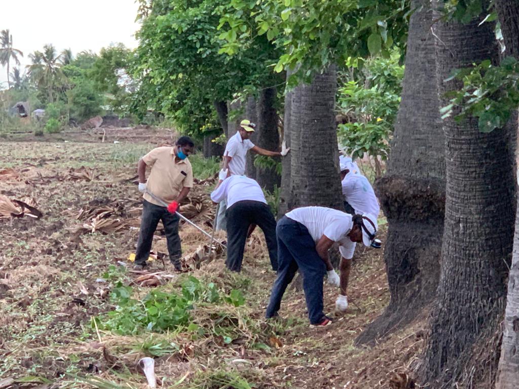రోడ్డు కు కుడి వైపు- పడమర అంచును, డ్రైనును కొందరు కార్యకర్తలు సంస్కరించబూను కొన్నారు. ఉపాధి హామీ కార్మికులు త్రవ్విన మట్టిని సమంగా-సక్రమంగా ఉపయోగిస్తూ-ఇంకా మిగిలిన ముళ్ల-పిచ్చి మొక్కల్ని తొలగిస్తూ-ఎండు తాడి మట్టల్ని గొర్రులతో లాగి, ట్రాక్టర్ లోకి ఎక్కిస్తూ ఒక సమన్వయంతో వీళ్లు చేసిన కృషితో ఈ దారి మేకల డొంక నుండి పూరి గుడిసెల దాక ఇప్పుడు చూసి తీరవలసినంత బాగా కనిపిస్తున్నది.