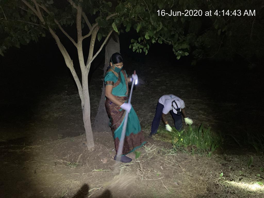 మరొక వంక దారిని, డ్రైను గట్టు ను చీపుళ్లతో ఊడ్చే పని, అన్ని రకాల వ్యర్థాల గుట్టలను ట్రాక్టర్ లోకెక్కించి, డంపింగ్ కేంద్రానికి తరలించే పని కూడ యథావిధిగా జరిగిపోయినవి!