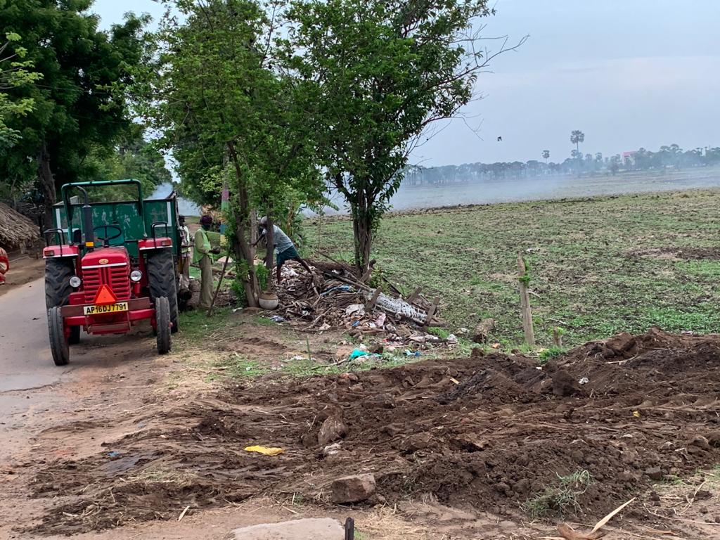 - నిన్నటి వలెనే నేడు కూడ మినీ జె.సి.బి. వచ్చింది. పంట కాలువ దక్షిణపు గట్టు మీది ఎగుడు దిగుడులను సమం చేసింది.