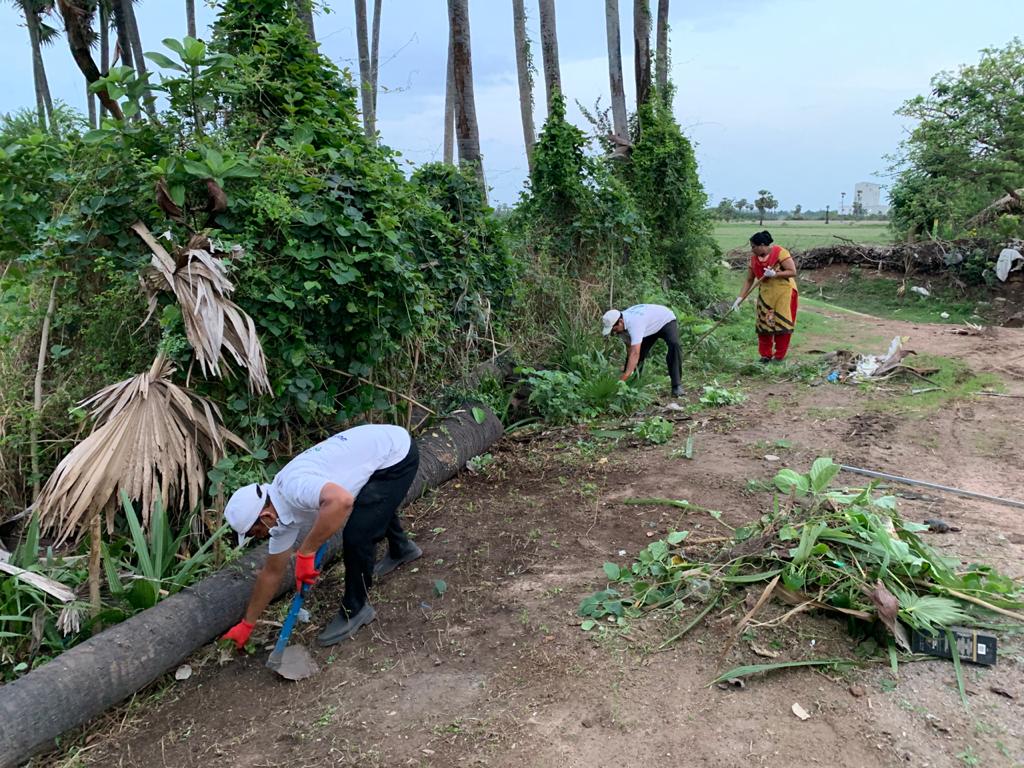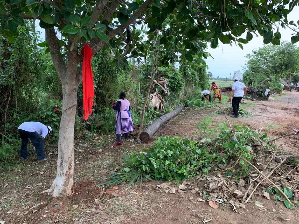 - ఇద్దరు కార్యకర్తలైతే ఈ రహదారి శుభ్రతలు చాలవన్నట్లు - ప్రక్కనున్న ఊరి పెద్ద ఖాళీ స్తలంలోకి వెళ్ళి మరీ బాగు చేయ ప్రయత్నించారు.