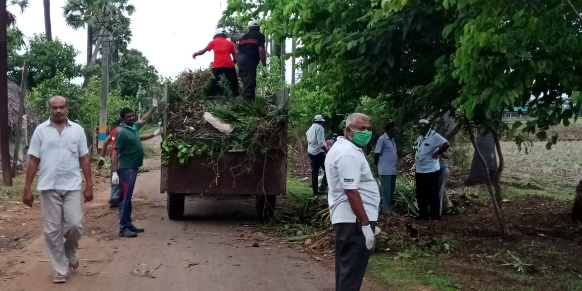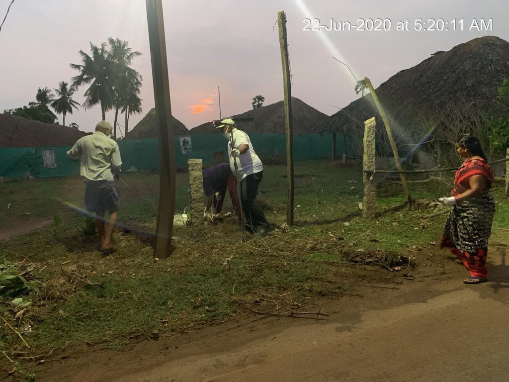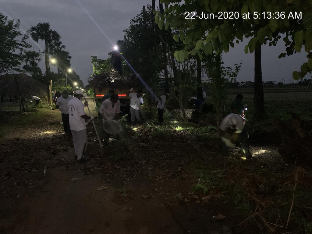 - కాలికి బురద అంటుకొంటున్న డ్రైను లోని ఎండు కొమ్మలు, తాటి మట్టలు, పిచ్చి – ముళ్ల మొక్కలు తెగి, గుట్టలుగా చేరి, ఆ పైన ట్రస్టు సంబంధిత ట్రాక్టరు లోకి చేరి- నాలుగైదు కిలో మీటర్ల దూరాన గల చెత్త కేంద్రానికి చేరుకొన్నాయి.