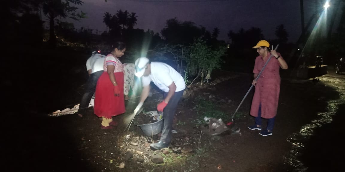 నేటి వేకువ రహదారి స్వచ్చ-సుందరీకరణ శ్రమదాన ముహూర్తం 4.01-6.05 సమయాల నడుమ! వేదిక నిన్నటి నిర్ణయం ప్రకారం- వాన తెరపి ఇచ్చినందున-కొత్త శివరామపురానికి ఉత్తర దక్షిణ దిశలుగా-పంట కాలువ వంతెన మొదలు కోళ్ళ షెడ్డు దాపు దాక-కిలో మీటరు లోపుగా! శ్రమదాతలు 33 మంది. వాతావరణం సమతూకంగా ఉన్నది గాని చీకటి. గ్రామ రహదార్ల సముచిత సేవకులైన కార్యకర్తలు రెండు బృందాలుగా విడిపోయి సాగించిన కర్తవ్య నిర్వహణలిలా ఉన్నాయి.