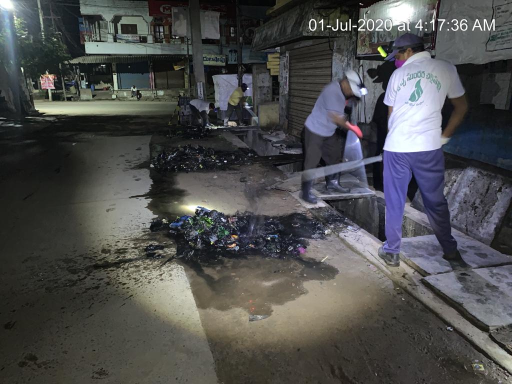 మిగిలిన వారు బందరు జాతీయ రహదారిని శుభ్రపరచి, నిల్వ నీటిని సన్న కాలువలు చేసి డ్రైనులోకి నడిపి, కూరల దుకాణాల వ్యర్ధాలను సేకరించి – తమ బాధ్యతలను పూర్తి చేశారు!