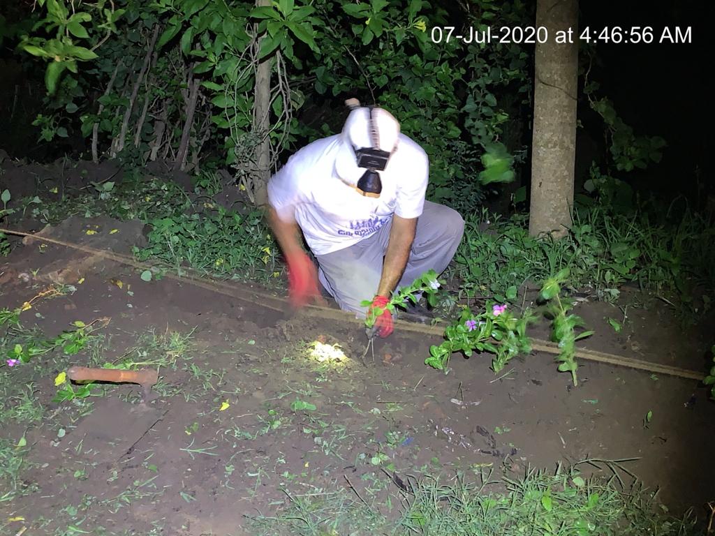 కరోనా ప్రమాద ఘంటికల వల్ల అనివార్యంగా 30 రోజులు శ్రమదాన వాయిదాను ప్రతిపాదించారు గాని, వందలాది మొక్కలు అప్పటికి మిగిలిపోయినందున కేవలం సగం మంది కార్యకర్తలే ఐదారుదినాలుగా ఆ బాధ్యతలను – ముఖ తొడుగులు, సామాజిక దూరం వంటి సకల నిబంధనలను పాటిస్తూనే నిర్వహిస్తున్నారు.