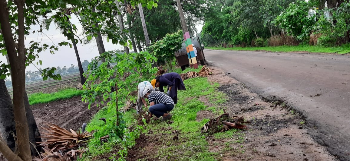 ఈ వేకువ 4.15 కు మొదలైన గ్రామ రహదార్ల హరిత సుందరీకరణం 6.18 దాక కొనసాగింది. నిన్నటి నిర్ణయానుసారం 18 మంది కార్యకర్తల బృందం పెదకళ్లేపల్లి మార్గంలోని మేకల డొంక వంతెన మొదలుకొని శివరామపురం దిశగా దారికి రెండు ప్రక్కల 73 మొక్కలు నాటారు. బిళ్ళ గన్నేరు పూల మొక్కలు ఈ సంఖ్యకు అదనం – ఎందుకంటే – అవి అసంఖ్యాకం!