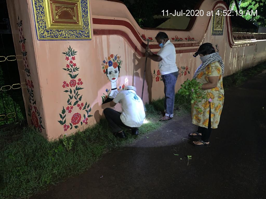 వర్షం చల్లపల్లి మీద మితిమీరిన ప్రేమను కురిపిస్తున్న నేటి వేకువ – అంతకన్నా ఎక్కువ అభినివేశమే ఉన్న స్వచ్చ కార్యకర్తలు అమరావతి రాజభవనం దగ్గరికి సకాలంలో చేరుకొన్నారు. కాని, గట్టి వర్షం ఆగే దాక – కొంత సమయం వేచియుండి – చిట్టి వానలోనే పనికి దిగి – 4.35 – 6.15 సమయాల నడుమ ఈ 18 మంది బృందం తన లక్ష్యాలను చేరుకొన్నది. అవి ఏమనగా;