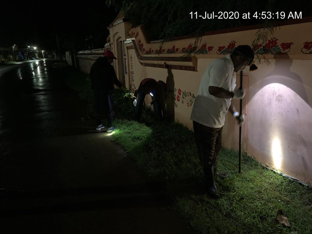 - దారికి ఉత్తర దిశగా, వైజయంతం ప్రహరీ ప్రక్కన గత నెలనాళ్ళ వర్షానికి మొలిచి పెరిగిన గడ్డి, ఇతర మొక్కల తొలగింపు.
