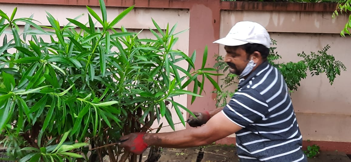 - కంచె బైట పెరుగుతున్న గడ్డిని తొలగించి, అక్కడ కూడ పాదులు త్రవ్వి బిళ్ళగన్నేరు మొక్కల్ని నాటిన వైనం.