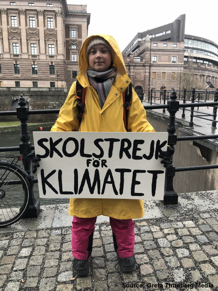 ఆమె పుట్టిందీ పెరిగిందీ స్వీడన్ అనే చిన్న దేశంలో. నేటి ప్రపంచపు కొలమానాలైన తలసరి సంపద, జి.డి.పి., పర్యావరణ విధ్వంసం, పరదేశాల దురాక్రమణం, మానవ విలువల్ని, పౌర హక్కుల్నీ కాలరాయడం వంటి ప్రమాణాల్లో అది బొత్తిగా అభివృద్ధి చెందని బుల్లి దేశం. ఆ టీనేజి యువతికిప్పుడు 16 ఏళ్ళు. తన కౌమారప్రాయం నుండి, గత ఐదారేళ్లుగా ఆమె ఈ భూమండలాన్ని కుదిపేస్తూనే ఉన్నది. తన ఎనిమిదో ఏడు నుండి ప్రపంచంలోని సమస్త శిశువుల, బాలల తరపున కాలుష్యాలను కనిపెంచుతున్న దేశదేశాల నాయకత్వాలను, ప్రభుత్వ విధానాలను పిడుగుల్లాంటి తన ప్రశ్నలతో ఉక్కిరి బిక్కిరి చేస్తూనే ఉన్నది.