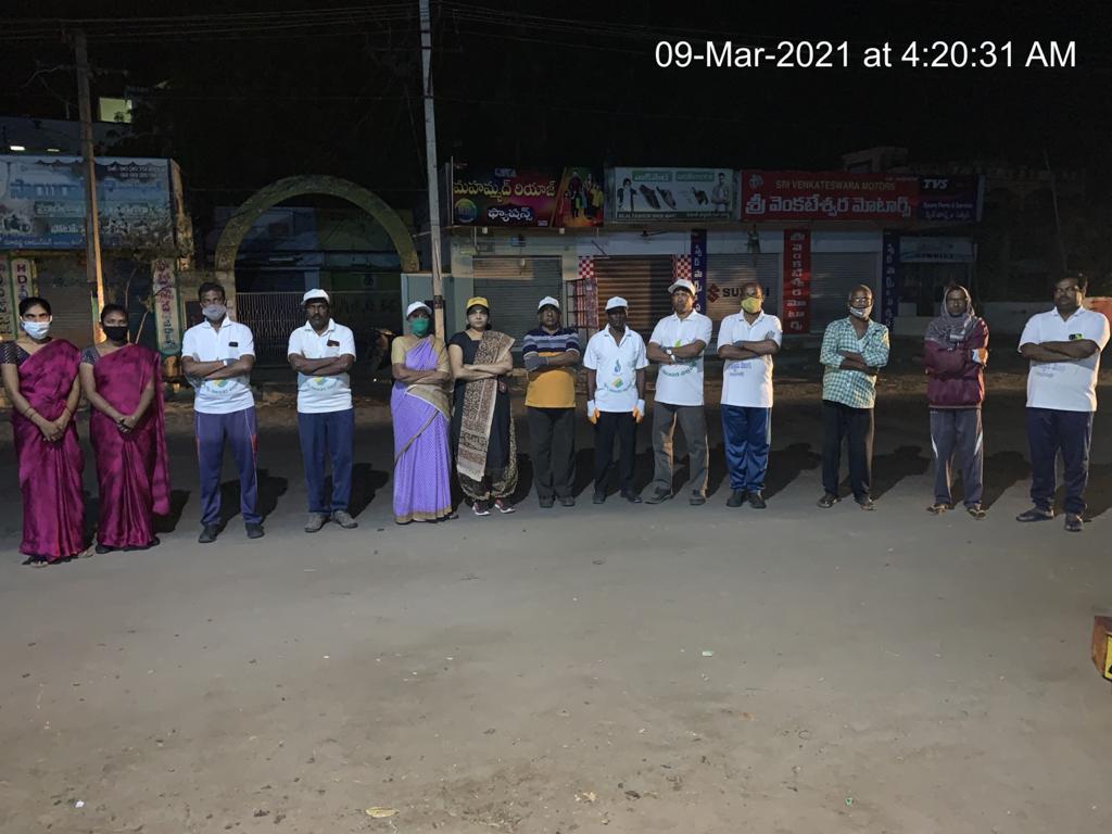 ఈ మార్చి మాసపు తొమ్మిదవ దినాన – మబ్బులు క్రమ్మిన వేకువ 4.20 సమయానికి బందరు రహదారిలో గల ATM కేంద్రం దగ్గర కనిపించిన 14 – 15 మంది స్వచ్ఛ కార్యకర్తలే కాదు – కొద్ది నిముషాల అంతరంతో 17 మంది చేరి, వాళ్ళ బలం 32 మందిగా తేలి, 6.20 దాక – 50/60 పని గంటలలో – సడలని పట్టుదలతో జరిగిన ముఖ్య వీధి స్వచ్ఛ – శుభ్ర – సౌందర్య సాధనా ప్రయత్నం ఫలించింది. ఐతే శుభ్రపడిన ప్రదేశం మాత్రం సుమారు వందగజాలే.