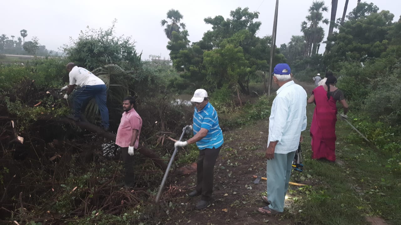ఆదివారం (22.08.2021) ముందు రాత్రి ముసురు వర్షం కురిసినా- కాలుష్యపు రణ క్షేత్రం(బండ్రేవుకోడు కాలువ ఉత్తరపు గట్టు) బురద-నీటిలో కాలు జారుతున్నా-పాతిక మంది కార్యకర్తలు మాత్రం సొంత ఊరి బాధ్యతను మరువలేదు. కాకపోతే – చేసే పనికి ఆటంకం కలిగి, వారనుకొన్న లక్ష్యం మాత్రం కొంత మిగిలిపోయింది. గంగులవారిపాలెం బాటకు తూర్పున పొలం వైపు సుందరీకరణ మాత్రం సజావుగానే సాగింది.