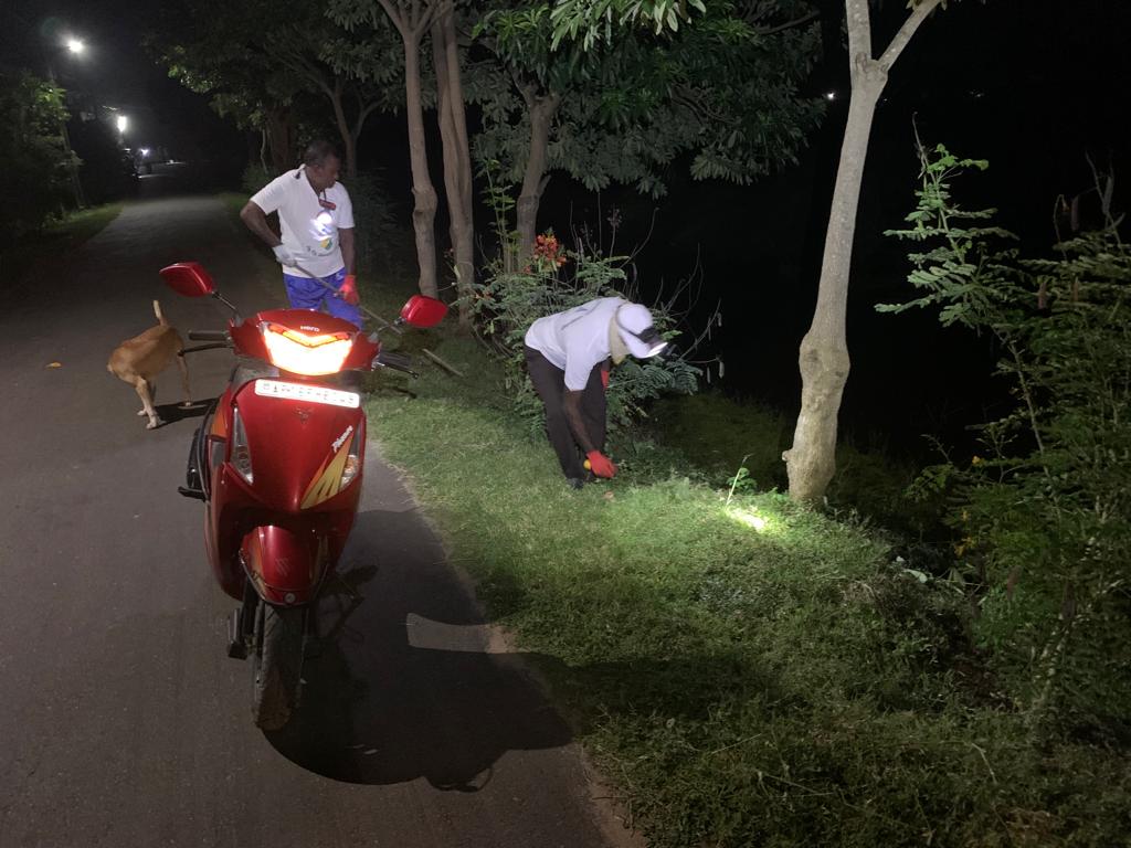 వీళ్లే 5.30 తరువాత క్రొత్త బైపాస్ రోడ్డు వంతెన దగ్గర వందలాది వాహన రాకపోకల భద్రతకై నడుం బిగించారు! అటుగా పొలాలకు వెళ్లి వచ్చే గ్రామ రైతులుగాని, ద్విచక్ర - చతుశ్చక్ర వాహన చోదకులు గాని సదరు సౌకర్యకారకుల్ని తలవనూ తలవరు, స్ఫూర్తినీ పొందరు!