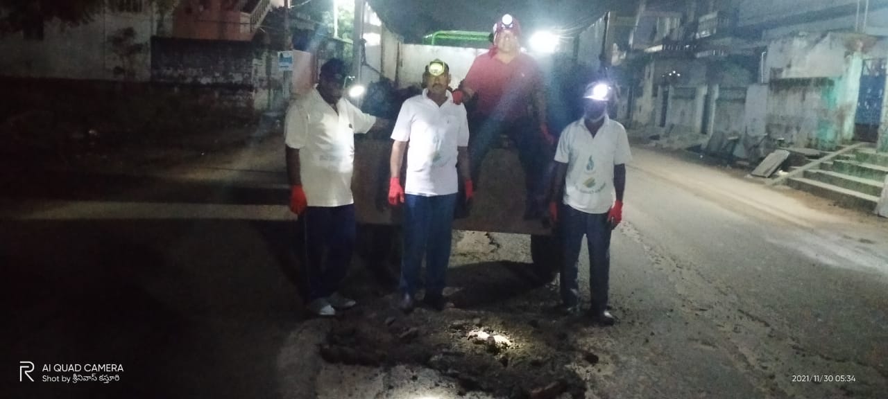 అక్కడి గంట మరమ్మతు పిదప బస్టాండు సమీపంలో - పంచముఖ ఆంజనేయ దేవళం ఎదుటి గుంటల దగ్గరా వీళ్లే. ఇక్కడి రోడ్డు వైద్యానికి మరో ముప్పావు గంట! ఏం చేస్తాం - ఈ గ్రామ పరిరక్షక దళానికిదొక దైనందిన ఆనందం!