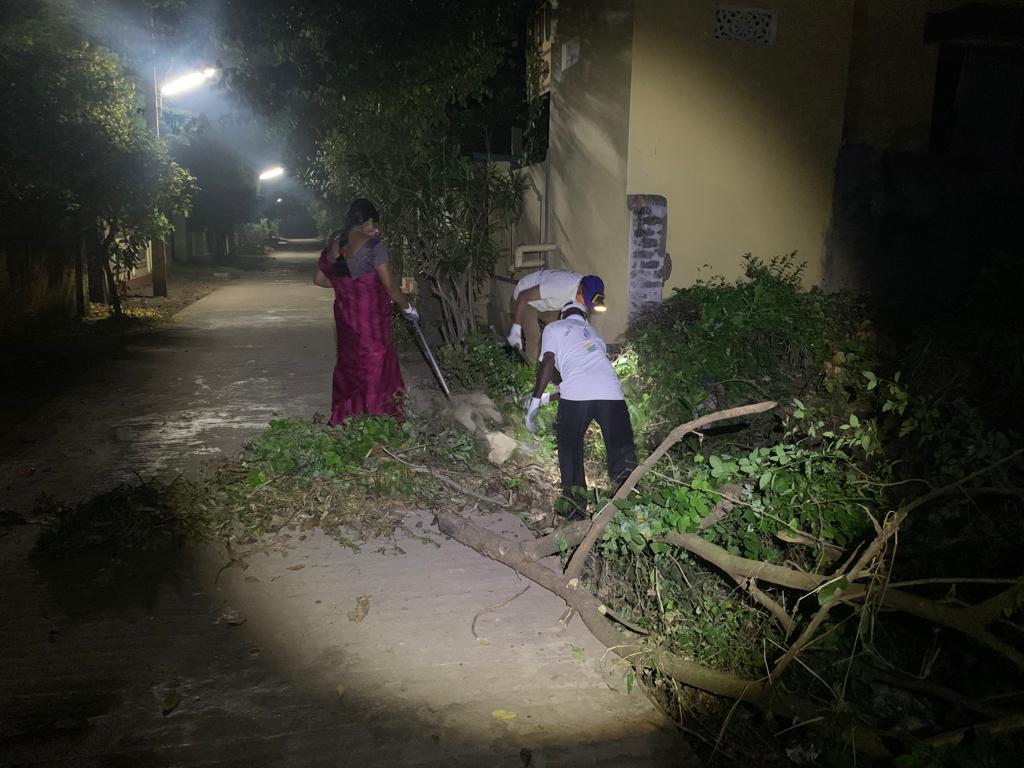 - విజయ నగర్ 2 వ వీధి మొదట- డ్రైను ప్రక్కన విరిగిపడే ప్రమాదం పొంచి ఉన్న ఒక సిమెంటు రోడ్డు అంచు మన్నిక కోసమూ, ఆమలుపు సుందరీకరణ కోసమూ ఐదుగురు కార్యకర్తల ముందుజాగ్రత్తలు,
