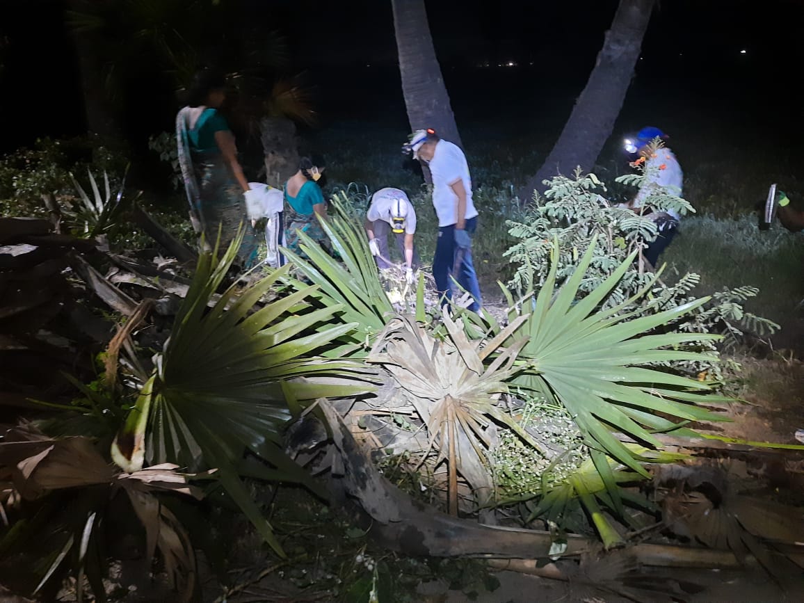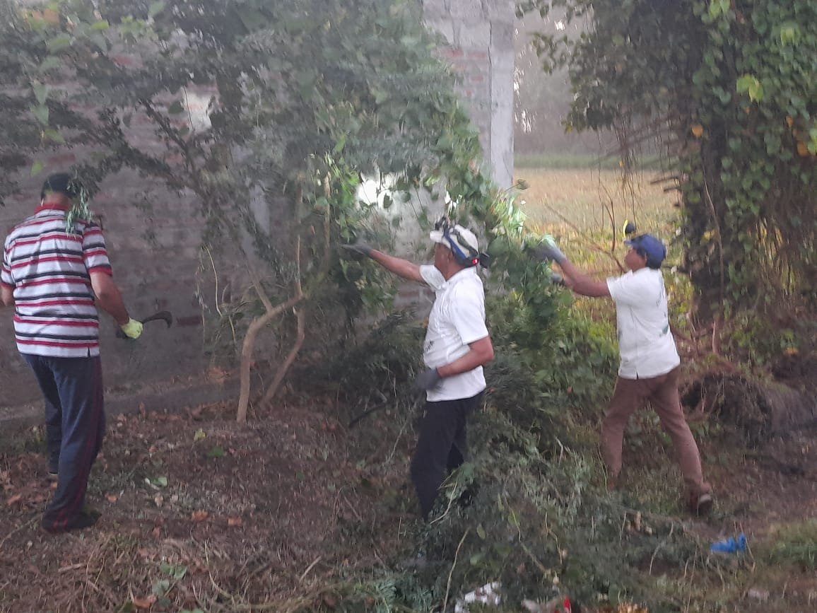 3) లోతైన డ్రైనులో దిగి, ముళ్ల - పిచ్చి - మొక్కల వ్యర్ధాల పనిబడుతున్న 10 - 12 మందీ,