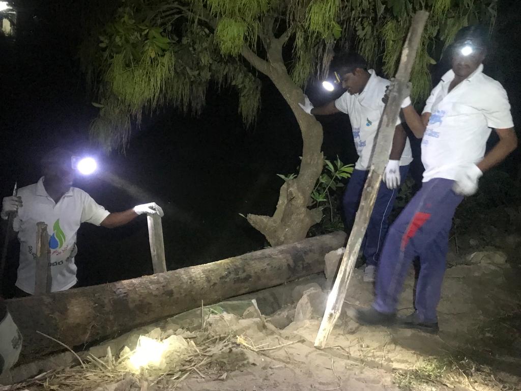 కాలువ గట్టు పొడవునా 3 - 4 అడుగుల మేర రోడ్డు విశాలం కావడంతో పాటు – కొన్ని చోట్ల తాడిదూలాలు అడ్డం పెట్టి, దానికి పెగ్గులు (మేకులు) అడ్డంగా దిగగొట్టి, మట్టితో మెరక చేసి - 15 పని దినాలకు పైగా గ్రామ భద్రతాదళం కృషి ఫలించింది. ఈ వేకువ కూడ దూరంగా పడి ఉన్న 15 అడుగుల భారీ తాటి మొద్దును అలా ఉపయోగించారు.