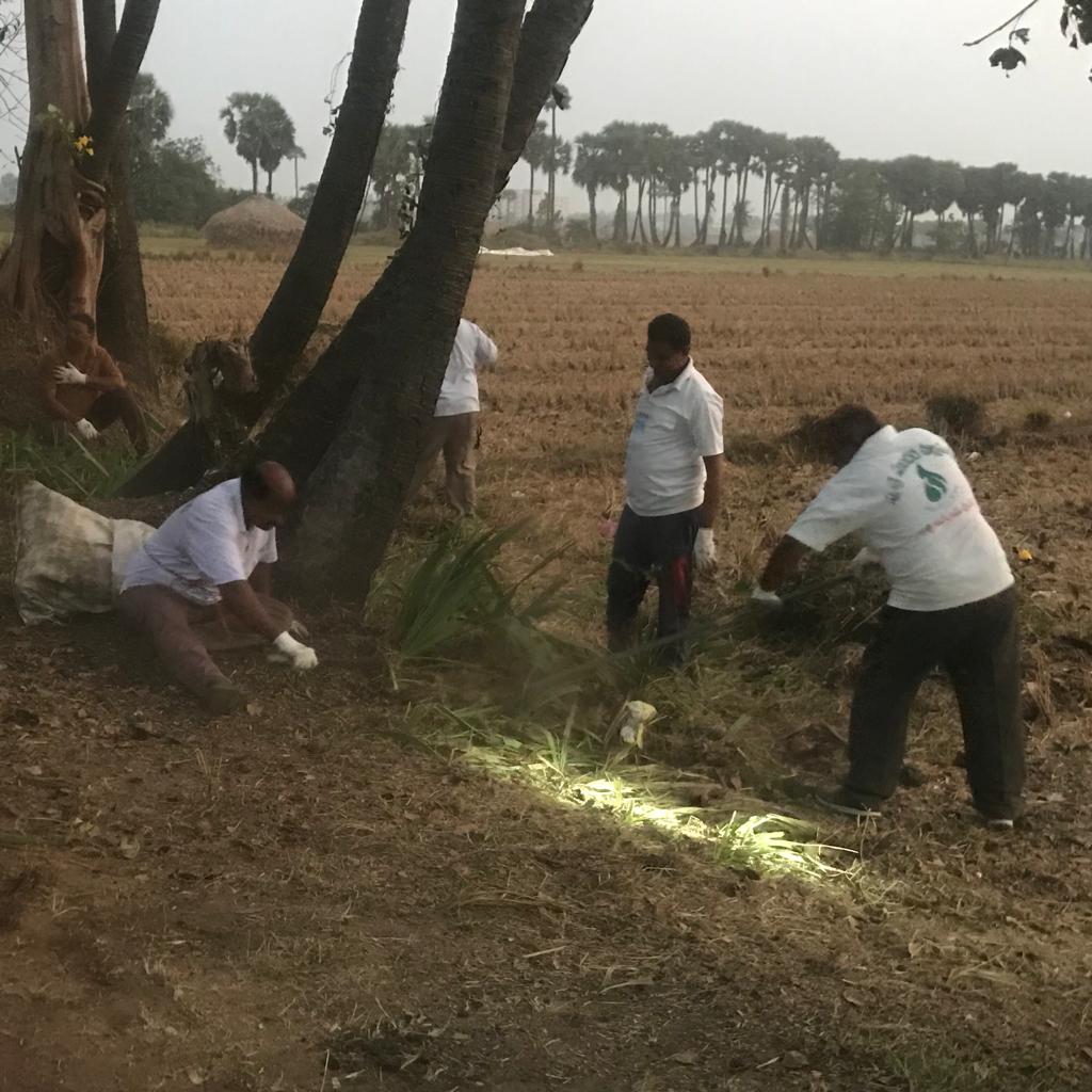2) తాటి చెట్ల, ముళ్ల మొక్కల నడుమ చిక్కుపడ్డ ప్లాస్టిక్, చెత్త, ఇంకా ఇతర దరిద్రపు వ్యర్దాల్ని చీపుళ్ళతో, గొర్రులతో బైటకు లాగుతున్న ఊడుస్తున్న నలుగురు మహిళలు!
