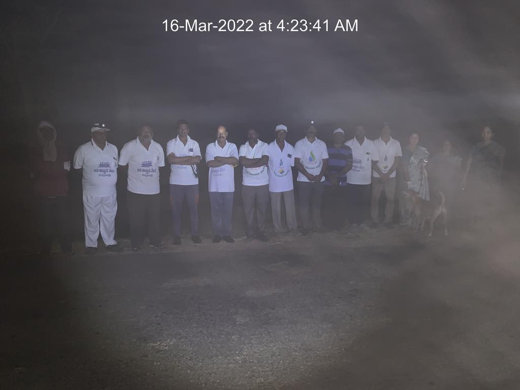 ఇదొక మంచు క్రమ్మిన (బుధవారం - 16/3/22) వేకువ! 9వ నంబరు పంట కాలువ! - శివరామపురం సమీపించే చోటు! అక్కడ 4.20am కే ఫొటోలో అస్పష్టంగా కనిపిస్తున్న 13 మంది కారకర్తలు! వాళ్ల దగర్లోనే కత్తీ కటార్ల వంటి ఆయుధాలతో ఒక ట్రాక్టరు! చూస్తుండగానే 3 కి.మీ దూరం నుండి వచ్చి చేరిన 10 -12 మంది మిగతా స్వచ్ఛ సైనికులు! 150 గజాల రహదారి నేటి యుద్ధరంగం!