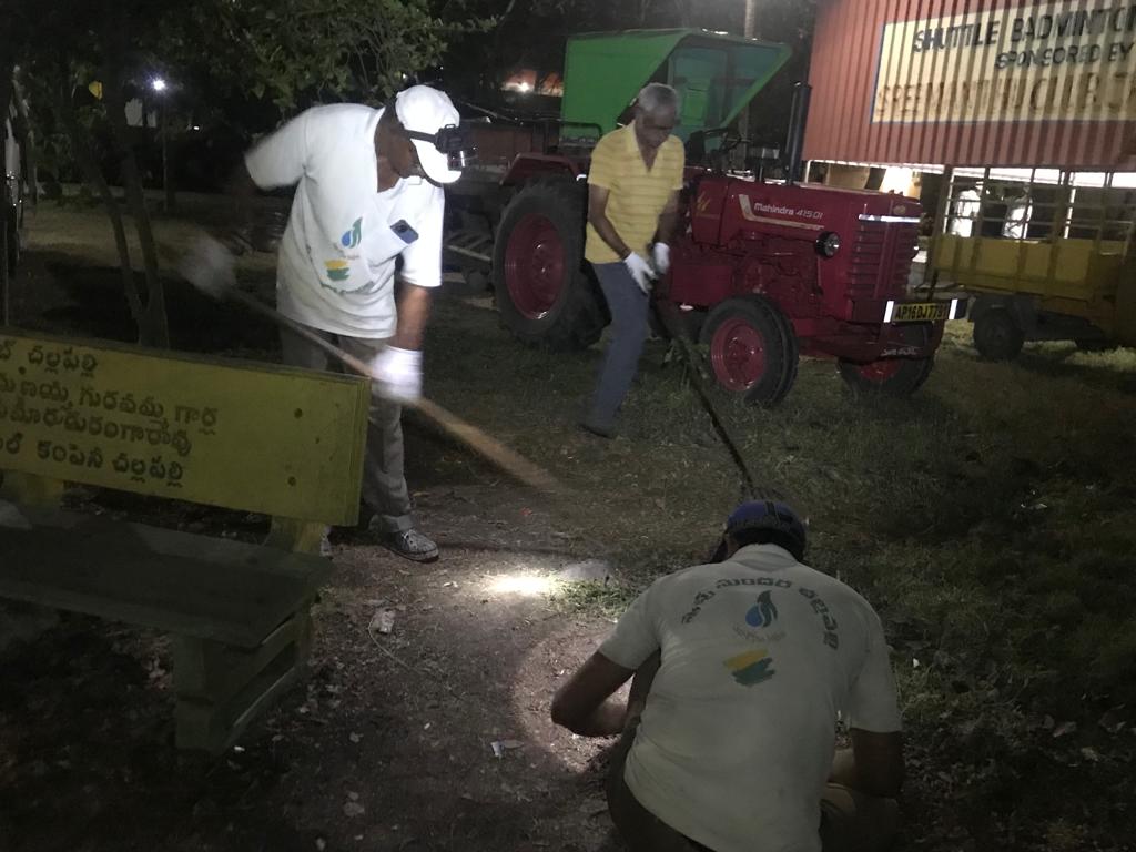 నేటికి మూడు వేకువలుగా పార్కులో ఇందరు కార్యకర్తలెందుకు శ్రమిస్తున్నారు? గృహిణులు, వృద్ధులు తమ శారీరక మానసిక శ్రమశక్తిని  ధారపోసే అవసరమేమిటి అంటే ఈ రెండు మూడు సాయంత్రాల్లో NTR పార్కులో అరుదైన జానపద కళా ప్రదర్శనలు, నాలుగైదు గంటల పాటు వాటిని ఆస్వాదించవస్తున్న వందలాది క్రిక్కిరిసిన ప్రేక్షకులు! అందరు ప్రోగైన పార్కులో పుట్టుకొచ్చే కాలుష్యాలు తొలగించే బాధ్యతో, అదృష్టమో ఈ స్వచ్చ కార్యకర్తలే దక్కించుకొంటున్నారు మరి!