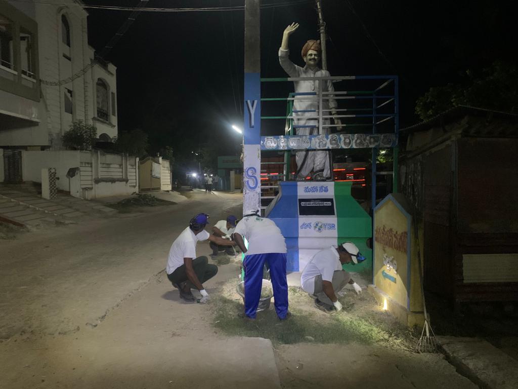 కార్యకర్తల శ్రమతో శుభ్రంగా ఉన్న రోడ్డు