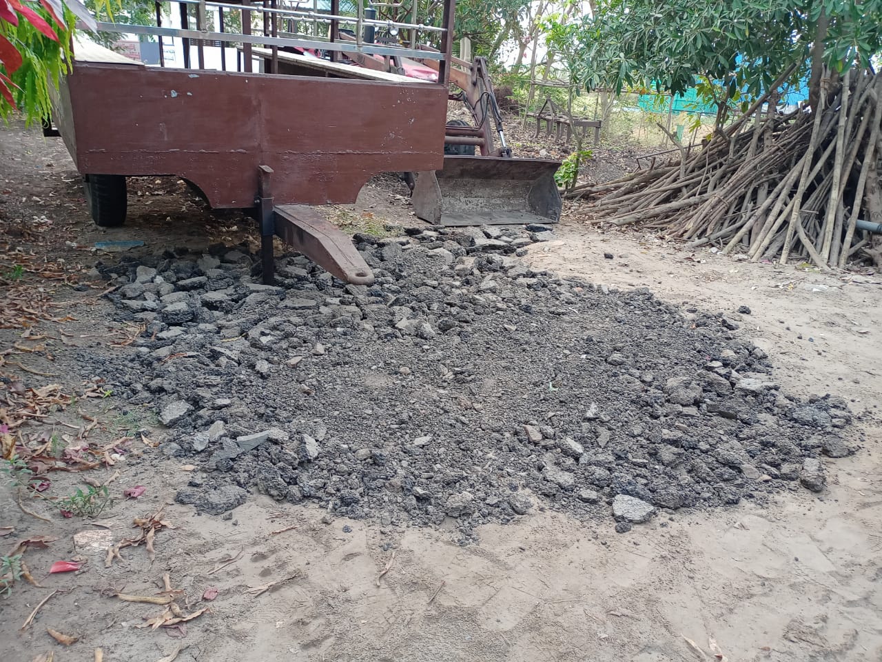 - ఇందుకు గాను, తామెప్పుడో భవిష్యత్తు అవసరాల కోసం సేకరించి, భద్రపరచుకొన్న తారు పెచ్చుల నిధి నుండి కొంత బైటకు తీసి, ట్రక్కులోని కెక్కించి, పైన చెప్పిన చోటికి చేర్చడం –