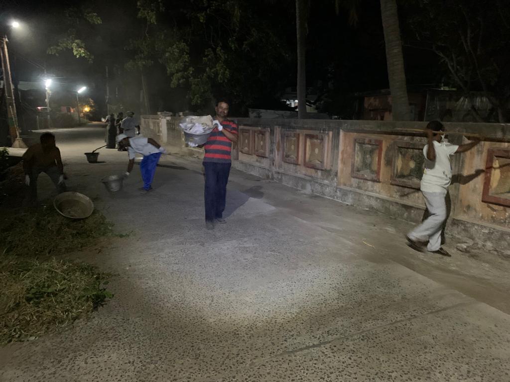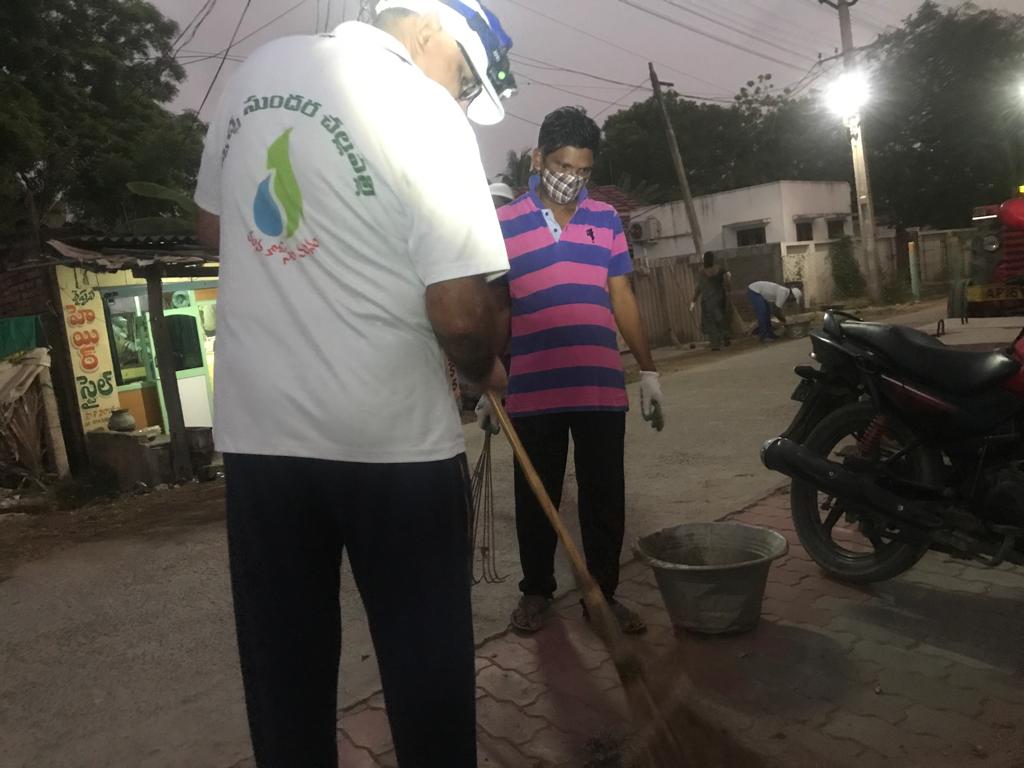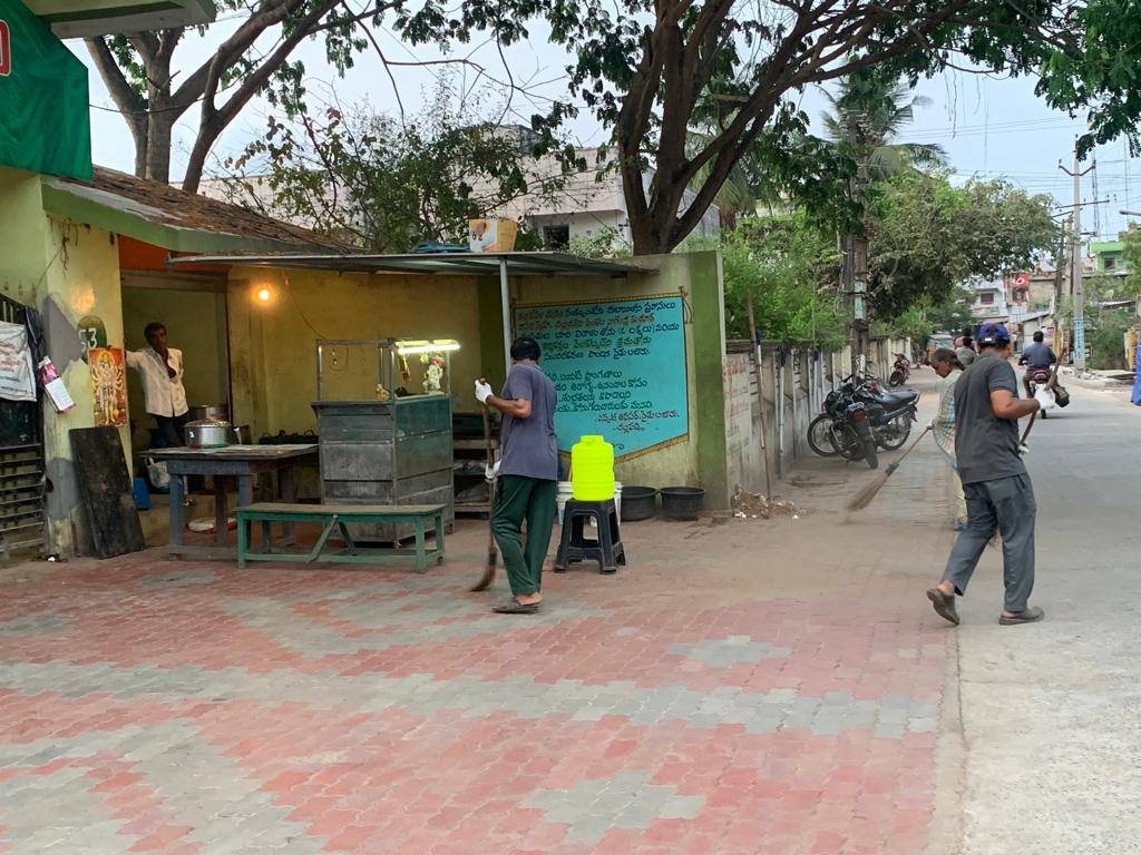 కార్యకర్తల నిన్నటి ముందస్తు అంచనా ప్రకారమైతే బందరు రోడ్డు దాక ఈ రహదారంతా శుభ్రపడి పోవాలి. కాని - పోలీసు నివాస భవనాల దగ్గరే ఆగిపోయింది. కారణమేముంది - ఈ 30 మంది శ్రమించక కాదు; వాతావరణ ప్రభావంతో ఒక్కొక్కళ్లకు చెనుట దిగ కారిపోక కాదు; మరేమనగా -