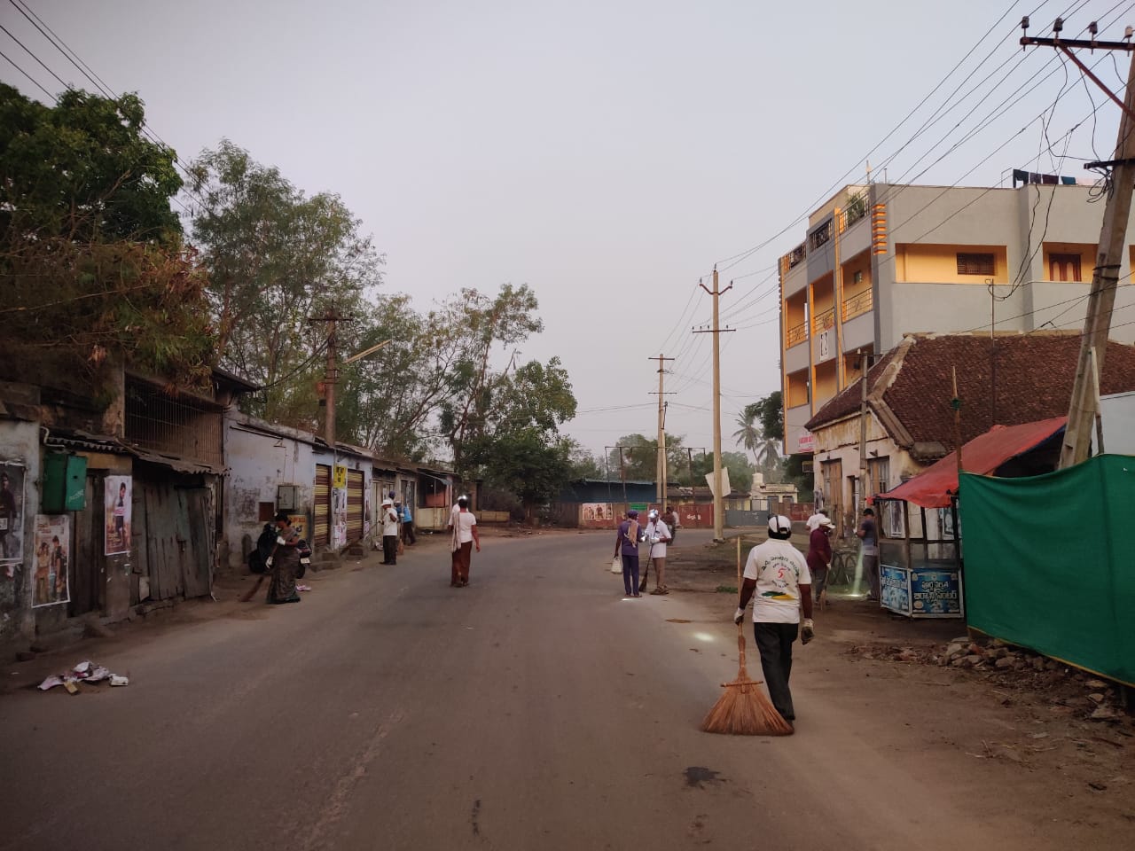 - రోడ్డు మీద, ప్రక్క దుకాణాల దగ్గర - ఎక్కడ ఏ ఇసుక, దుమ్ము, కాగితం ముక్కలు, తుక్కులు, ప్లాస్టిక్ లు ఉండడాన్ని ఒప్పుకోమని, చెమటలు కారుస్తూ శ్రమిస్తున్న నలుగురైదుగురు మహిళామతల్లులూ;
