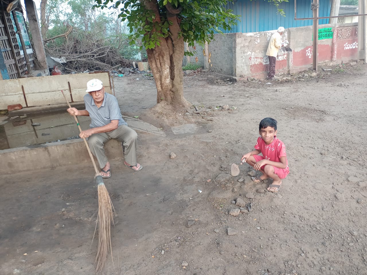 - 84 ఏళ్ల ఒక వృద్ధ వైద్యుడు - ఒంట్లో ఓపిక తగ్గుతున్నా, అప్పటి దాక కార్యకర్తలకు మంచినీళ్లందించి, నిలబడలేక కూర్చొని, చీపురుతో ఊడ్చే విధం;