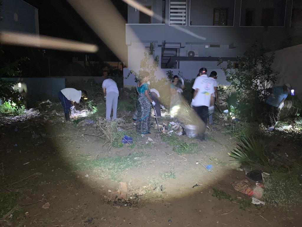 ఇంత అందమైన భవంతుల నడుమ – ఆ గ్రహస్తులు కష్టమనుకోకుండా కనీసం వారానికొకమారు తలో గంట ప్రయత్నిస్తే, తమ పరిసరాలెంత ఆహ్లాదకరంగా మారతాయో తెలిసి వచ్చేట్లుగా ఉన్నది స్వచ్చ సుందర సైనికుల నేటి కృషి!40 మంది శ్రమదాతల 60 పని గంటల శ్రమతో క్రొత్త పరిసరాల అనుభూతిని పొందిన పరిసర కుటుంబీకులు దాన్ని చిరస్థాయిగా చేయాలని ఆశిద్దాం!