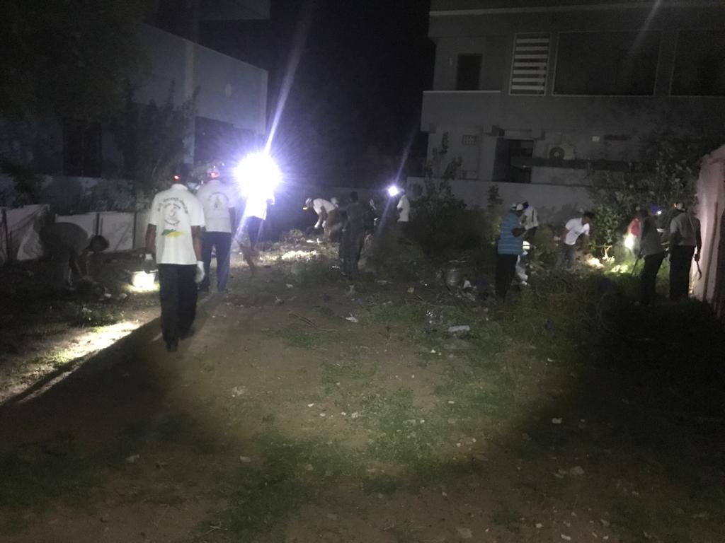 సరే - బాగానే ఉన్నది. రోజూలాగే ఈ 30 - 40 మంది గంటన్నరకు పైగా రోడ్లు ఉడ్చారు, ఖాళీ ప్రదేశాల్లో ముళ్ల - పిచ్చి చెట్లు నరికారు, ఎగుడు దిగుడు నేల మీద బ్యాలెన్సు చేసుకొంటూ ప్లాస్టిక్ సీసాలు, కప్పులు, ప్లేటులు, మద్యం సీసాలు, మరికొన్ని దిక్కుమాలిన కశ్మలాలను ఏరి, డిప్పలకెత్తి,