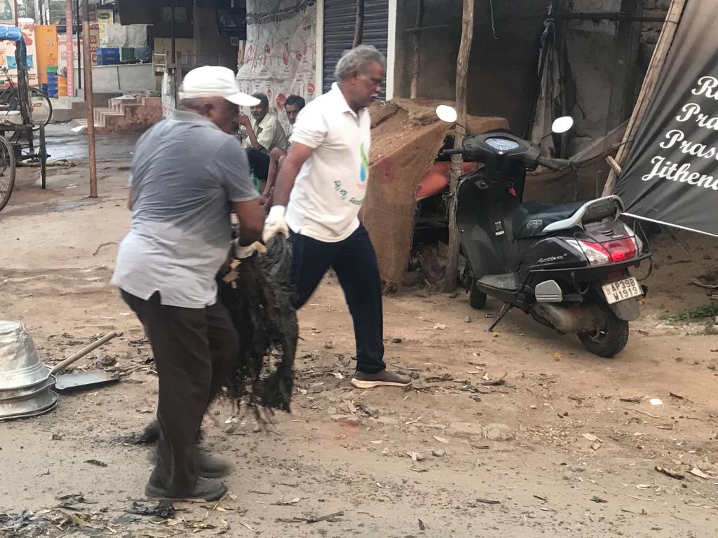 కాస్త మితభాషి ఐన స్వచ్చ కార్యకర్త – తూములూరి లక్ష్మణ నామధేయుడు పలికిన గ్రామ సంక్షేమ కారక స్వచ్చ-శుభ్ర-సౌందర్య నినాదాలతో 6.30 కి వీళ్ళ శ్రమదానం ముగించారు!
